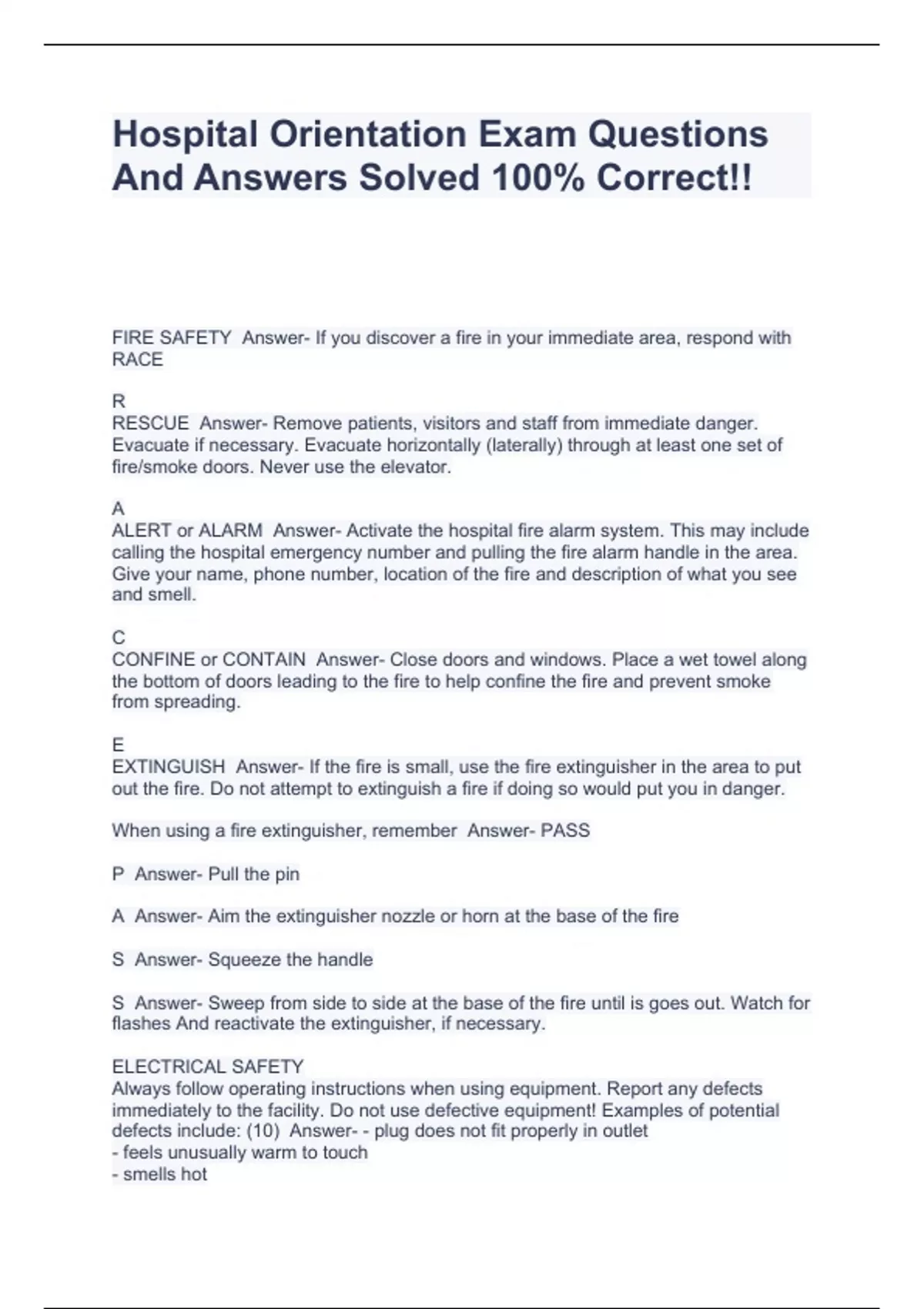 Hospital Orientation Exam Questions And Answers Solved 100% Correct!!