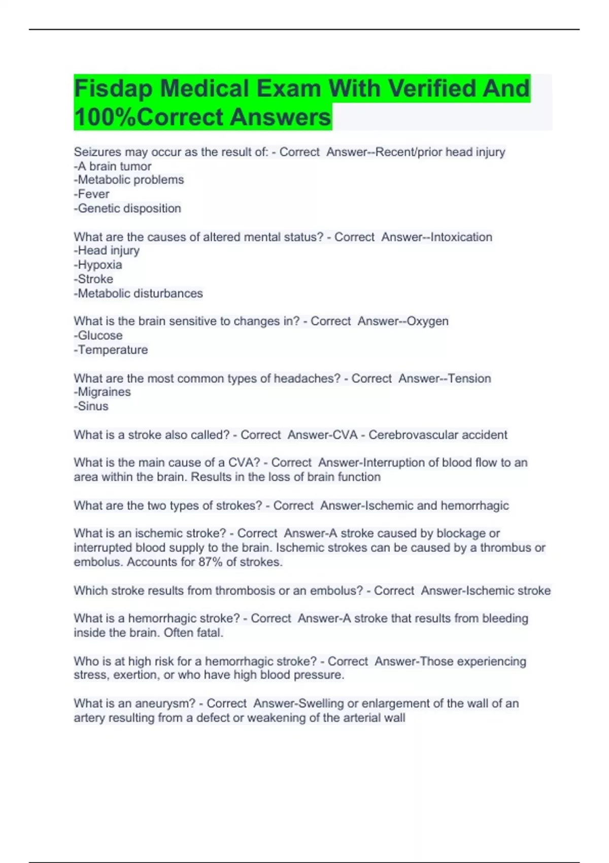 Fisdap Medical Exam With Verified And 100%Correct Answers
