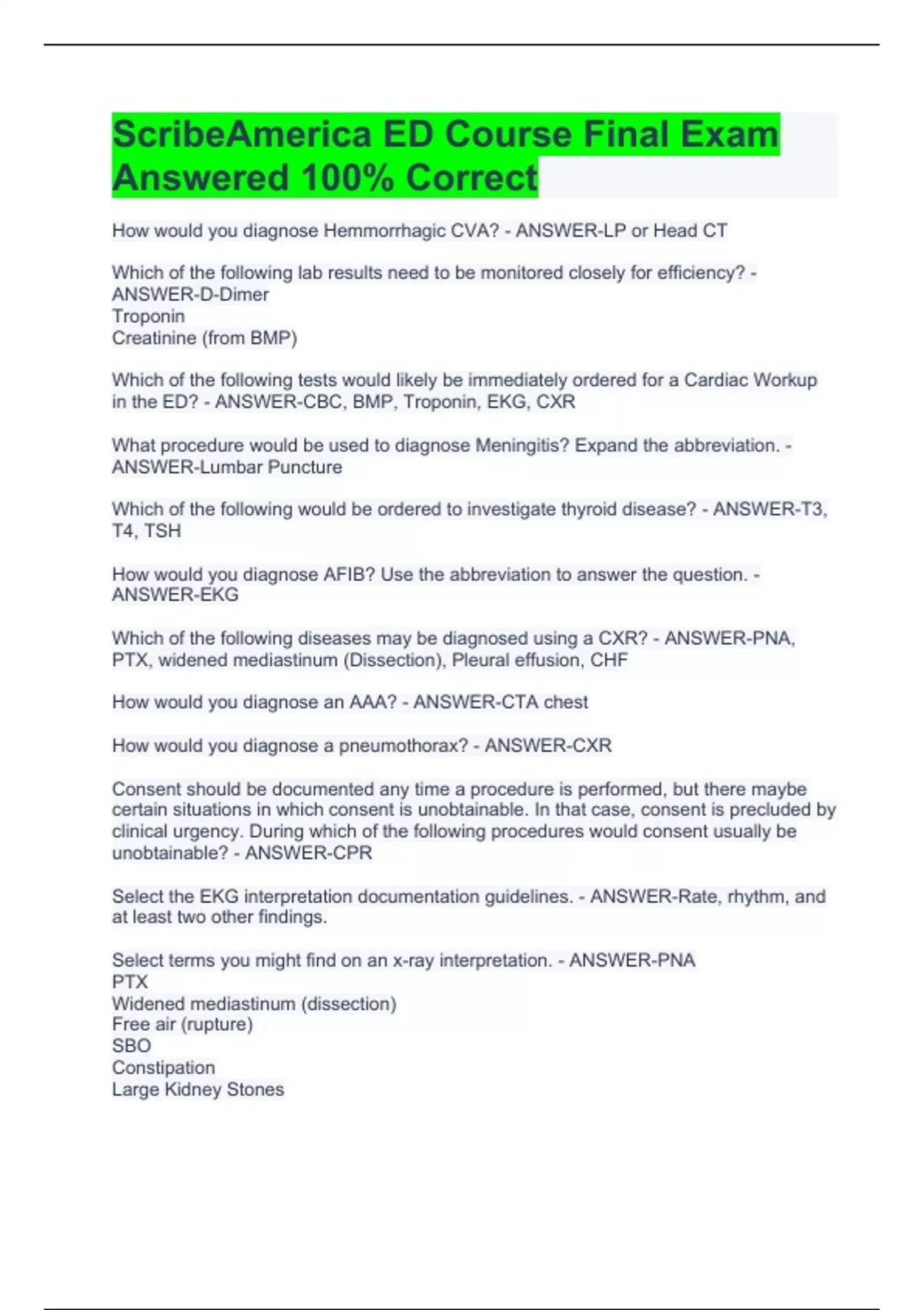 ScribeAmerica ED Course Final Exam Answered 100% Correct