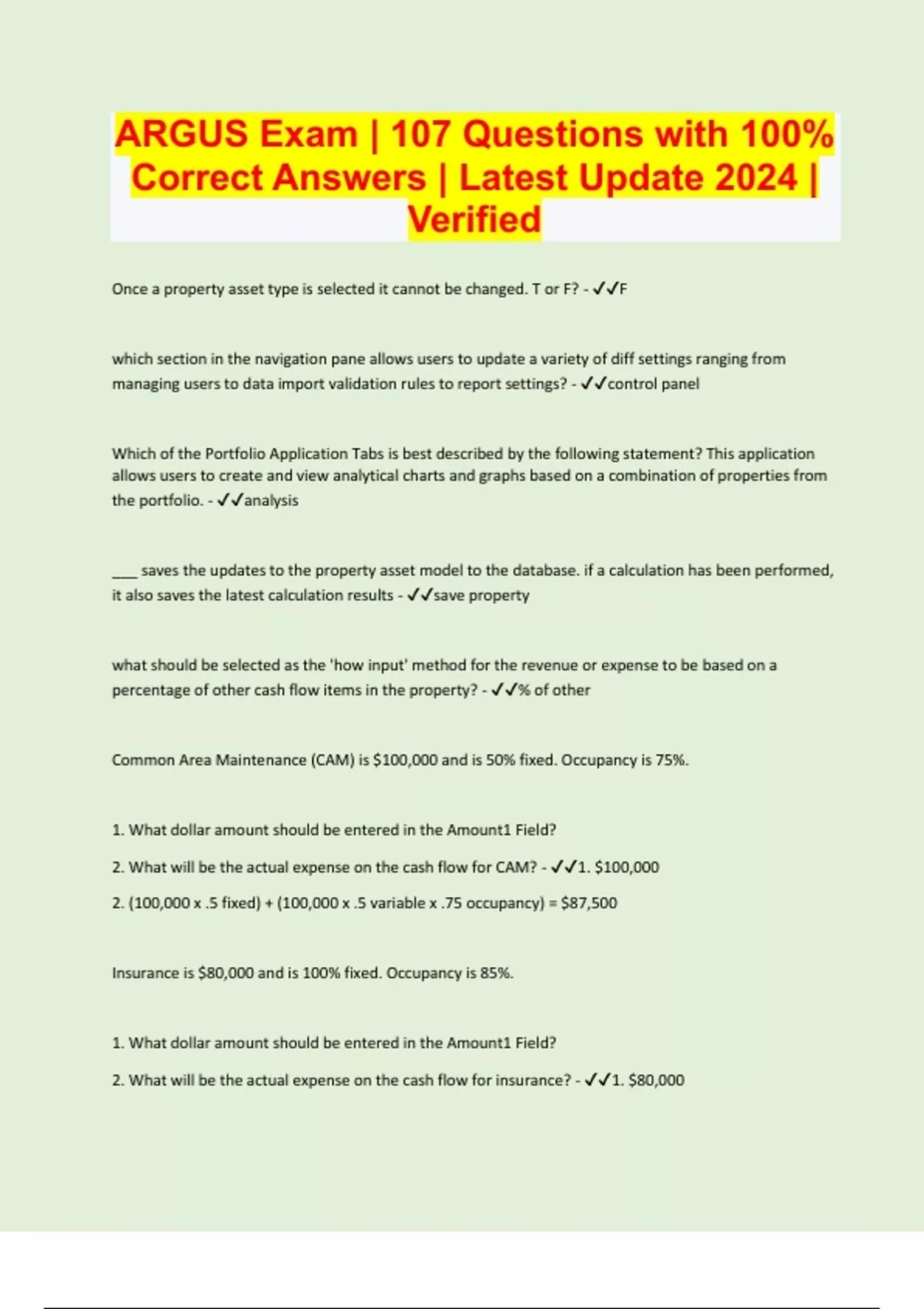 ARGUS Exam | 107 Questions with 100% Correct Answers | Latest Update 2024 | Verified