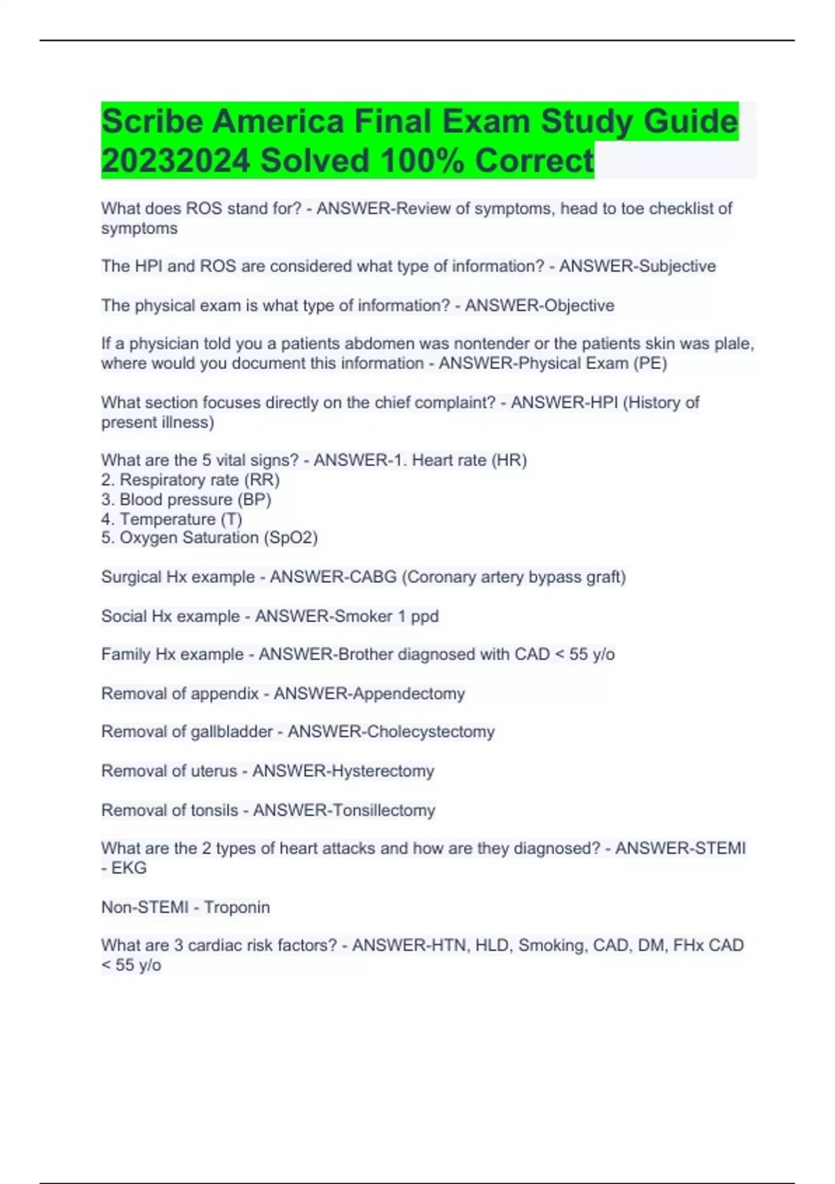 Scribe America Final Exam Study Guide Solved 100% Correct