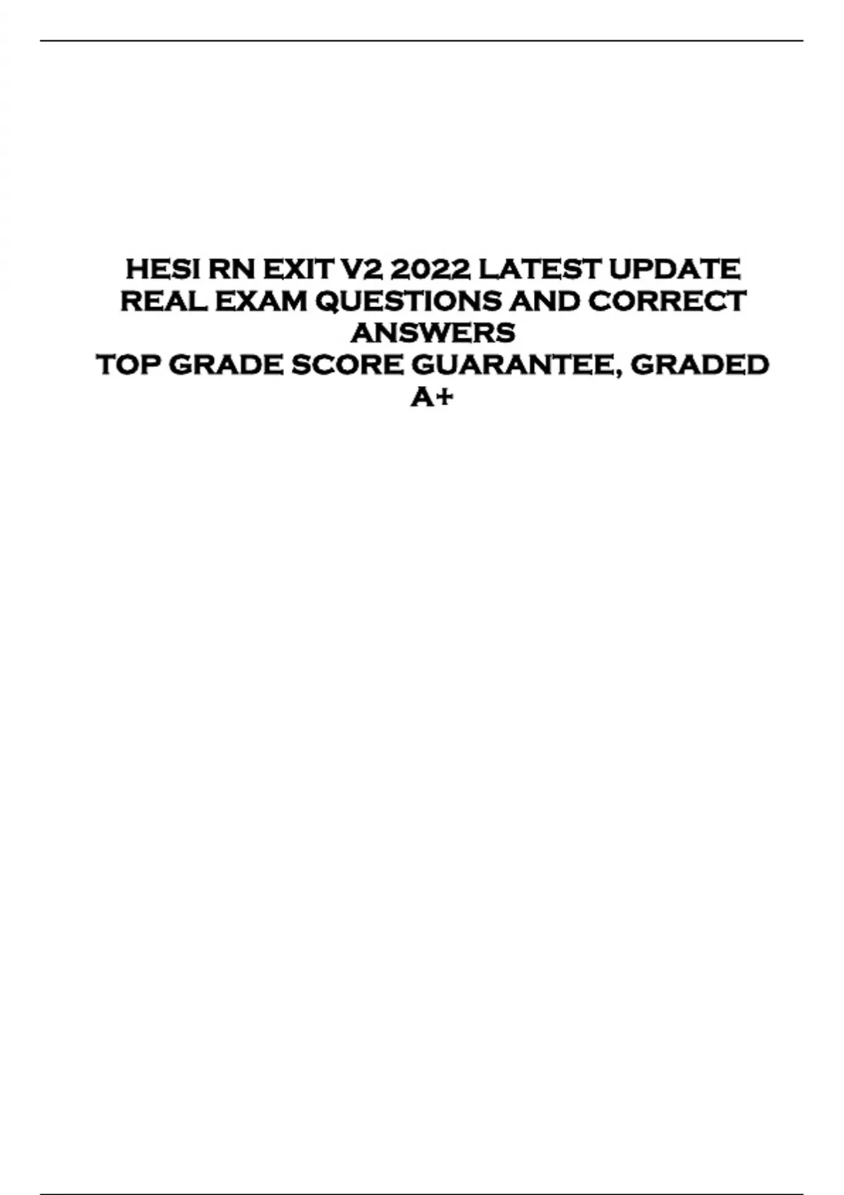 HESI RN EXIT V2 2022 LATEST UPDATE REAL EXAM QUESTIONS AND CORRECT ANSWERS TOP GRADE SCORE GUARANTEE, GRADED A+