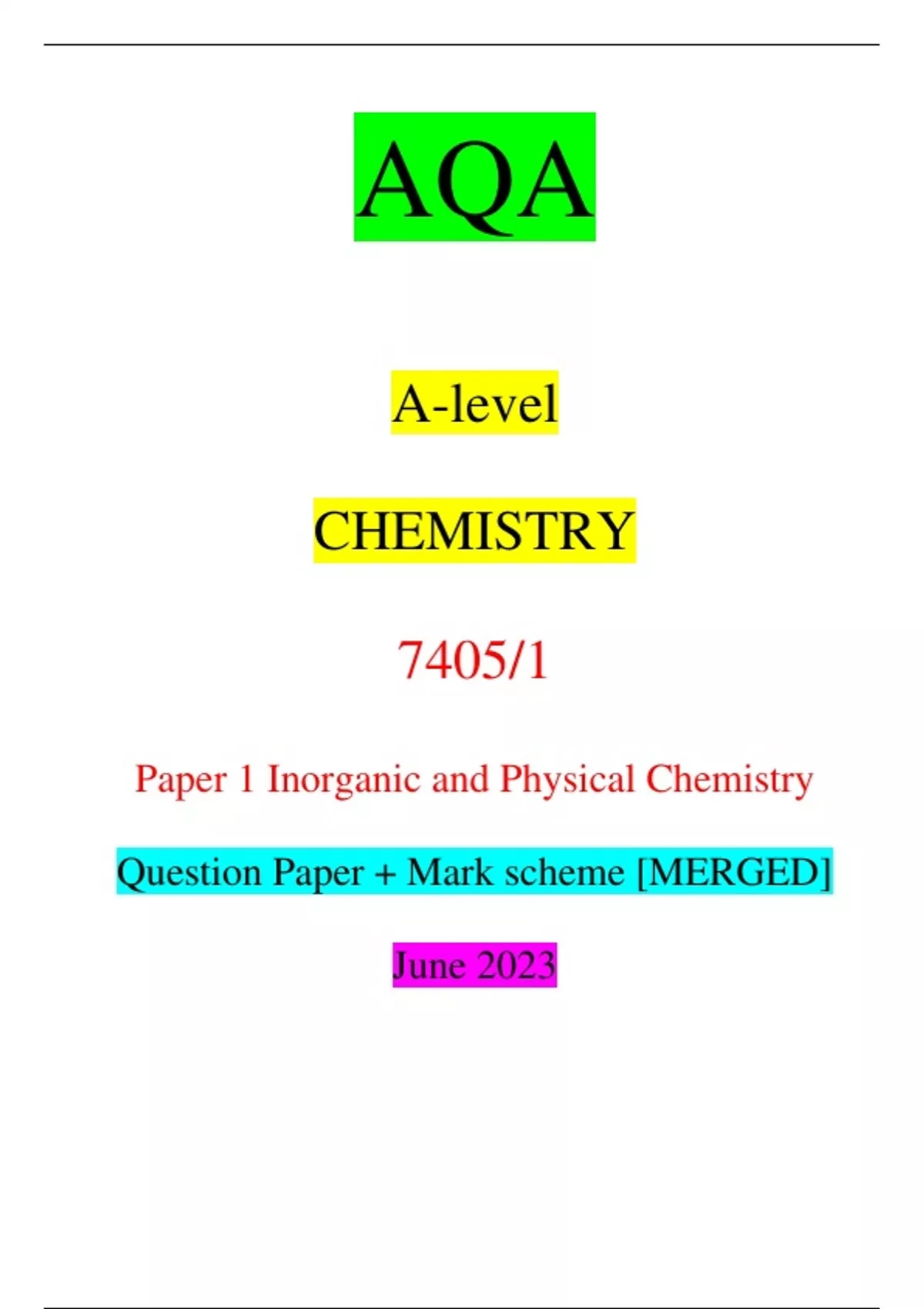 AQA A-level CHEMISTRY 7405/1 Paper 1 Inorganic and Physical Chemistry Question Paper + Mark scheme [MERGED] June 2023