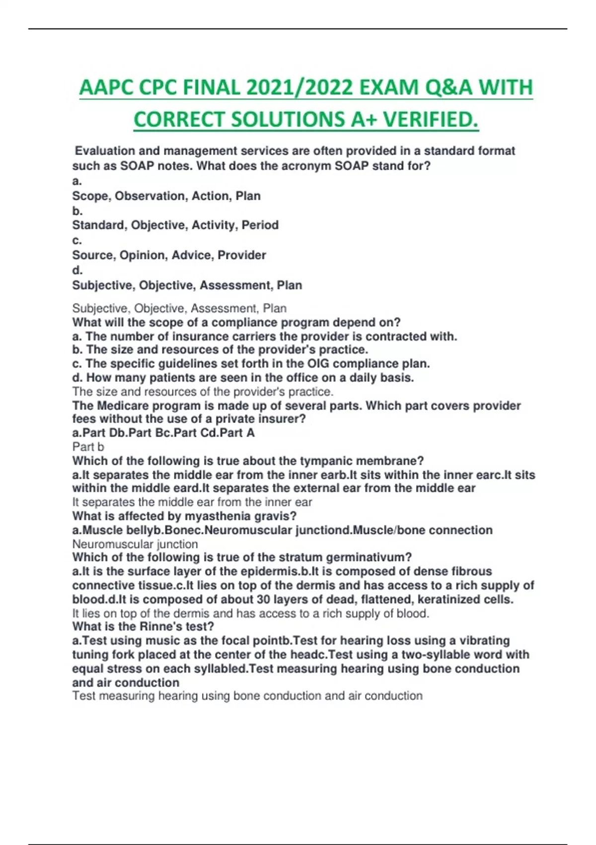 AAPC CPC FINAL 2021/2022 EXAM Q&A WITH CORRECT SOLUTIONS A+ VERIFIED.