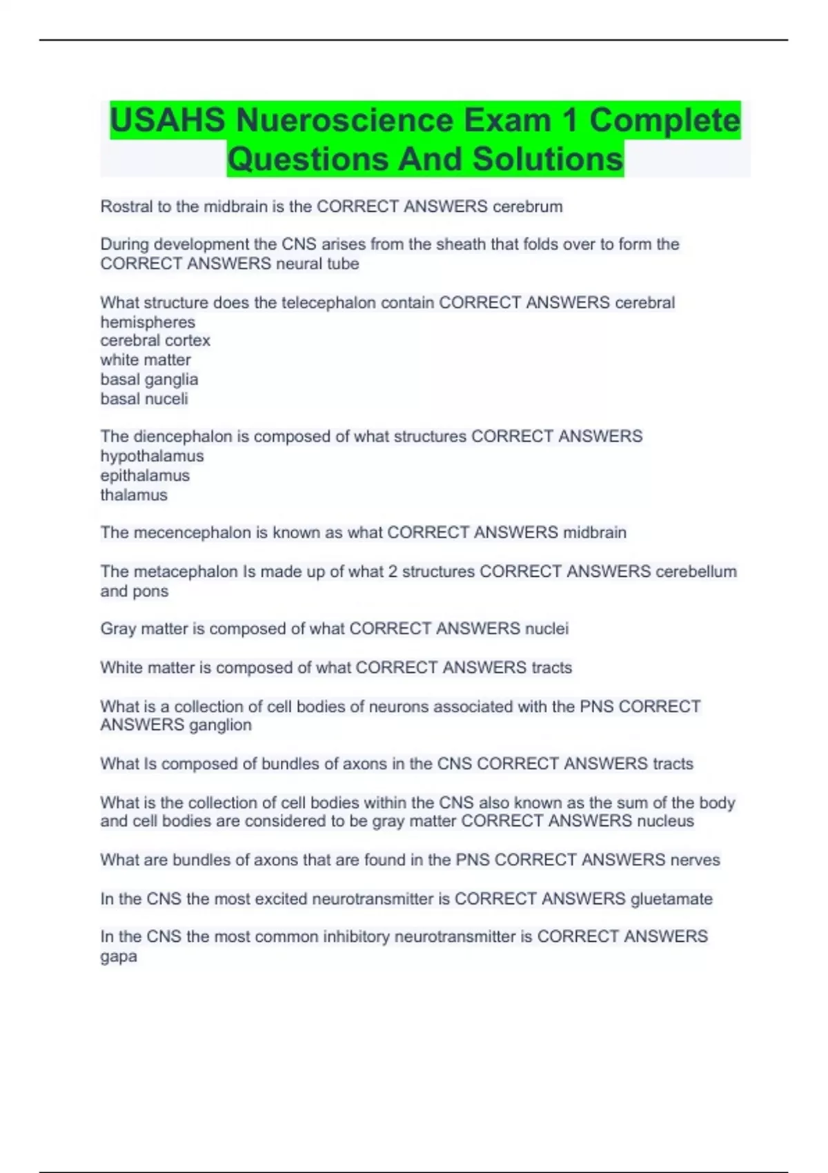 USAHS Nueroscience Exam 1 Complete Questions And Solutions