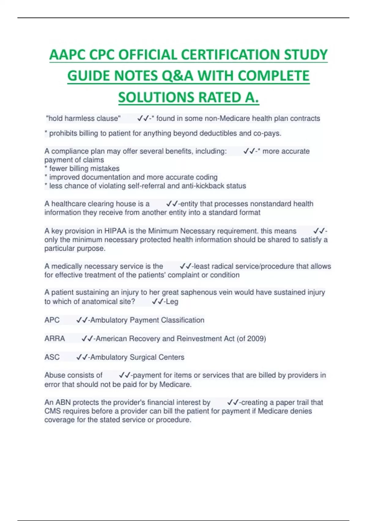 AAPC CPC OFFICIAL CERTIFICATION STUDY GUIDE NOTES Q&A WITH COMPLETE SOLUTIONS RATED A