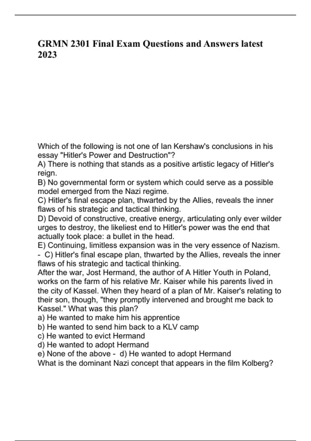 GRMN 2301 Final Exam Questions and Answers latest 2023