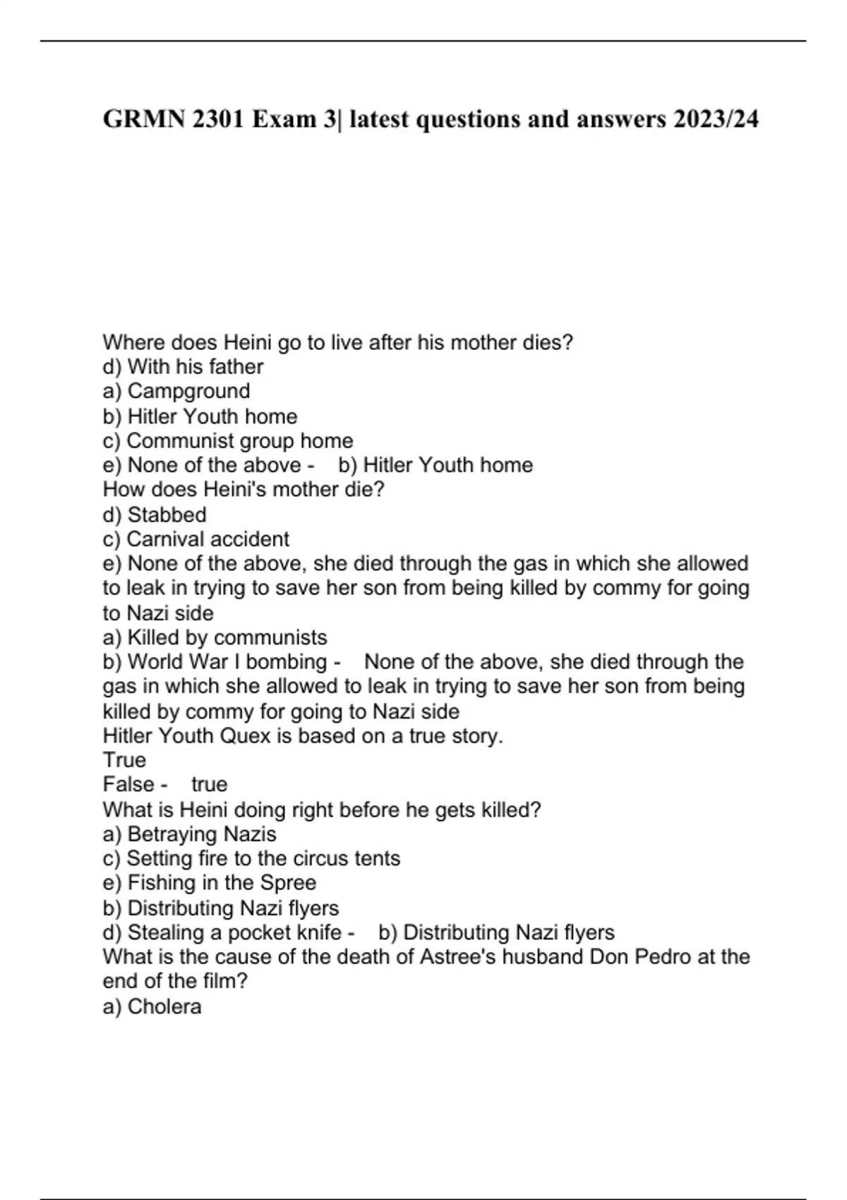 GRMN 2301 Exam 3| latest questions and answers 2023/24