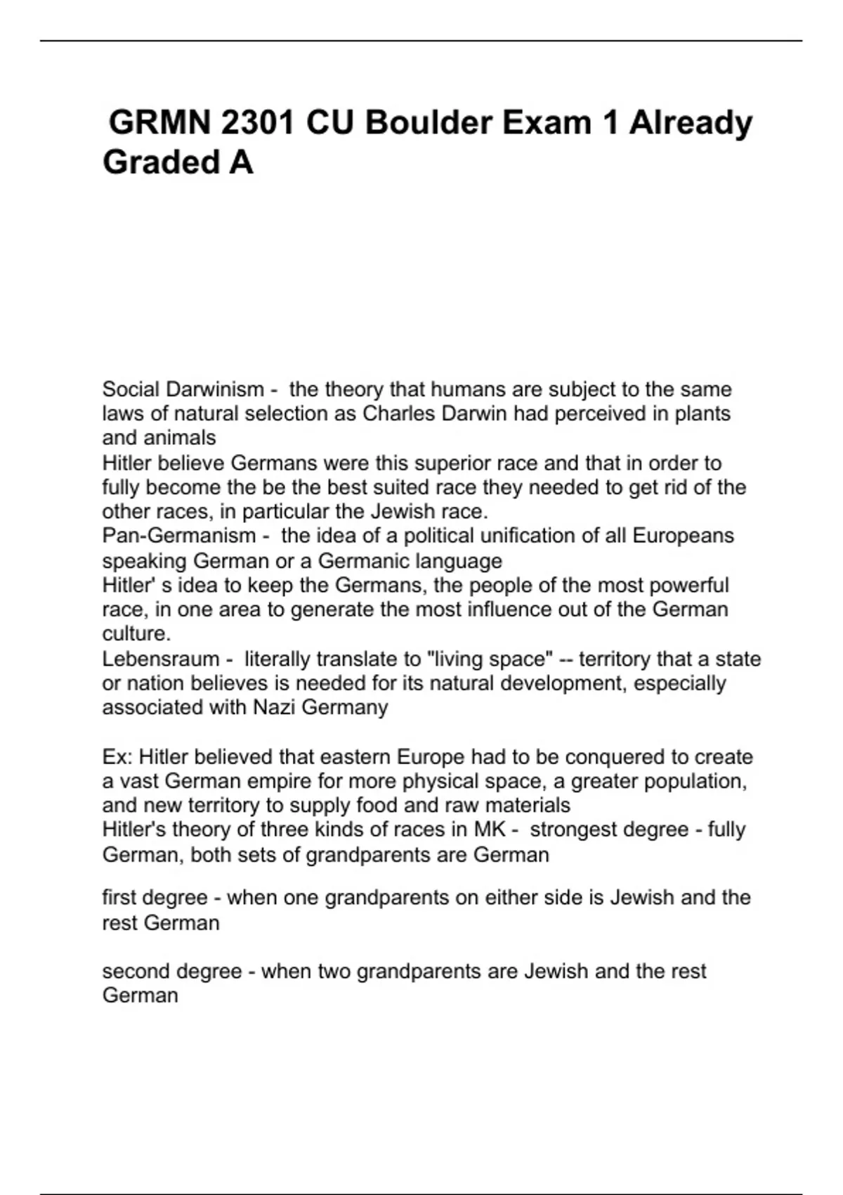 GRMN 2301 CU Boulder Exam 1 Already Graded A