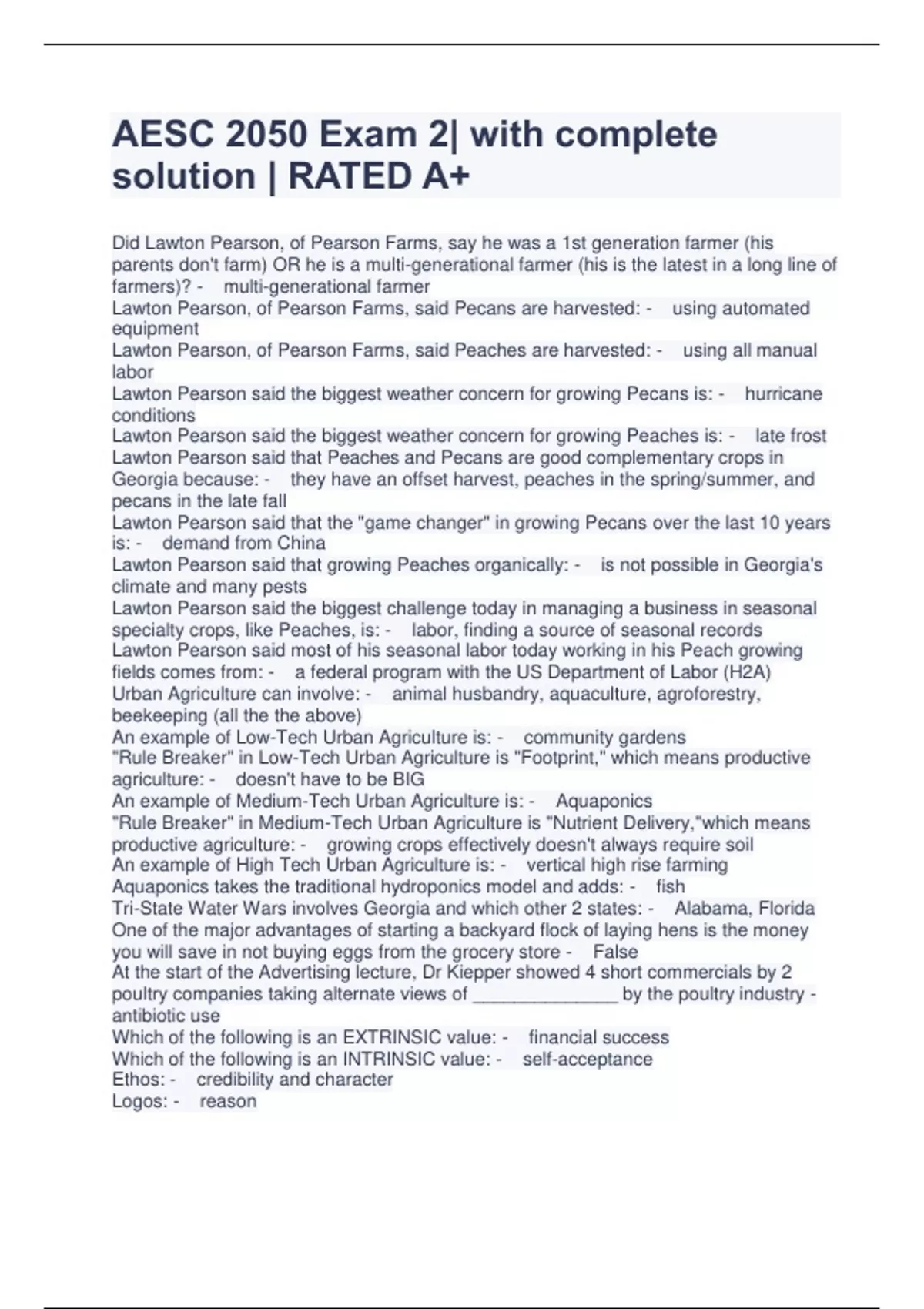 AESC 2050 Exam 2| with complete solution | RATED A+