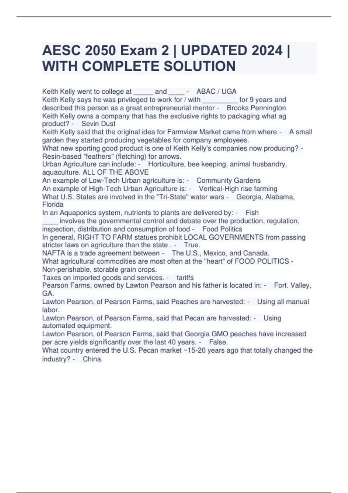 AESC 2050 Exam 2 | UPDATED 2024 | WITH COMPLETE SOLUTION