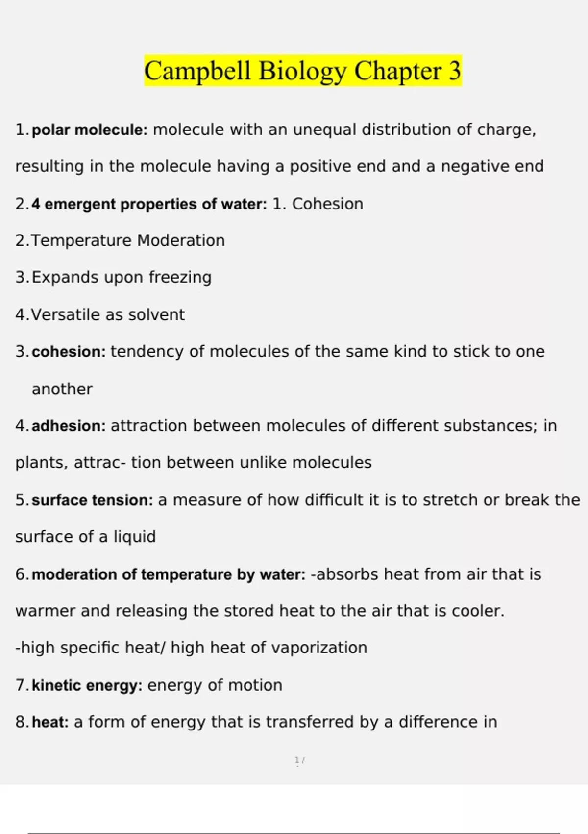 Complete Test Bank Campbell Biology 11 edition Questions & Answers with rationales (Chapter 3)