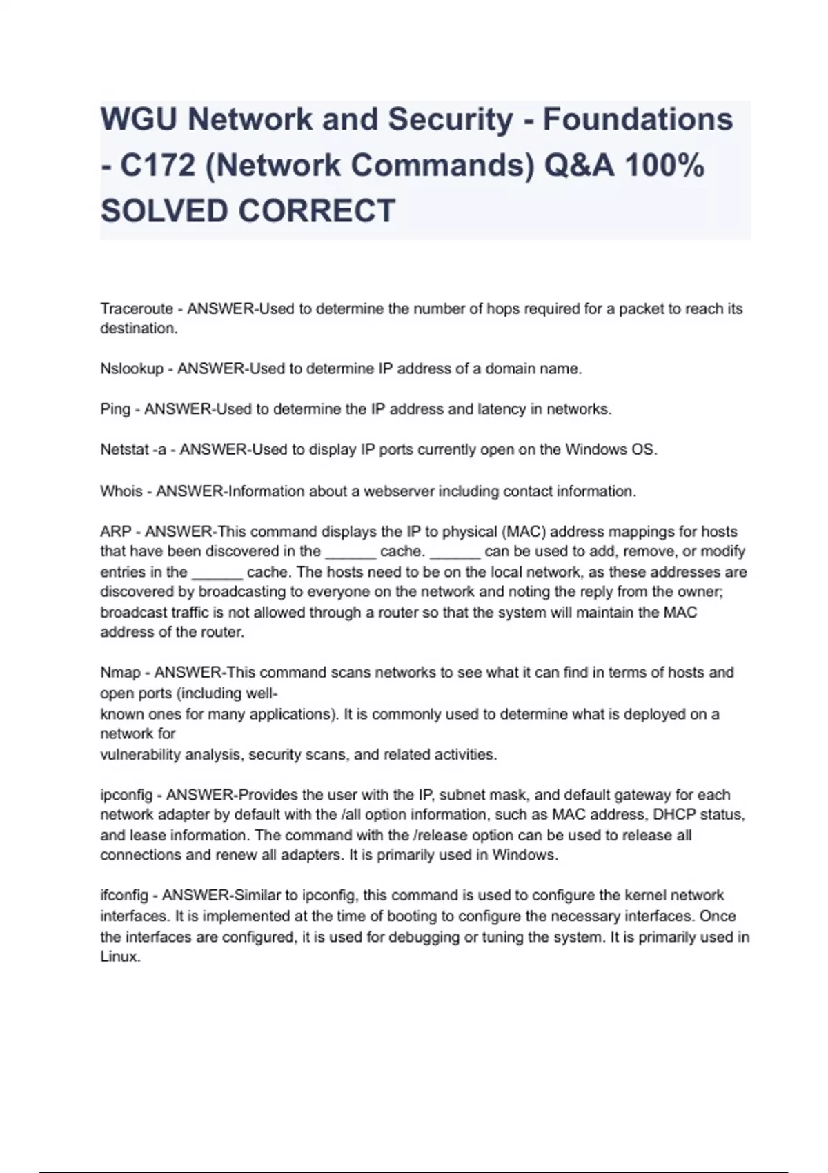 WGU Network and Security - Foundations - C172 (Network Commands) Q&A 100% SOLVED CORRECT