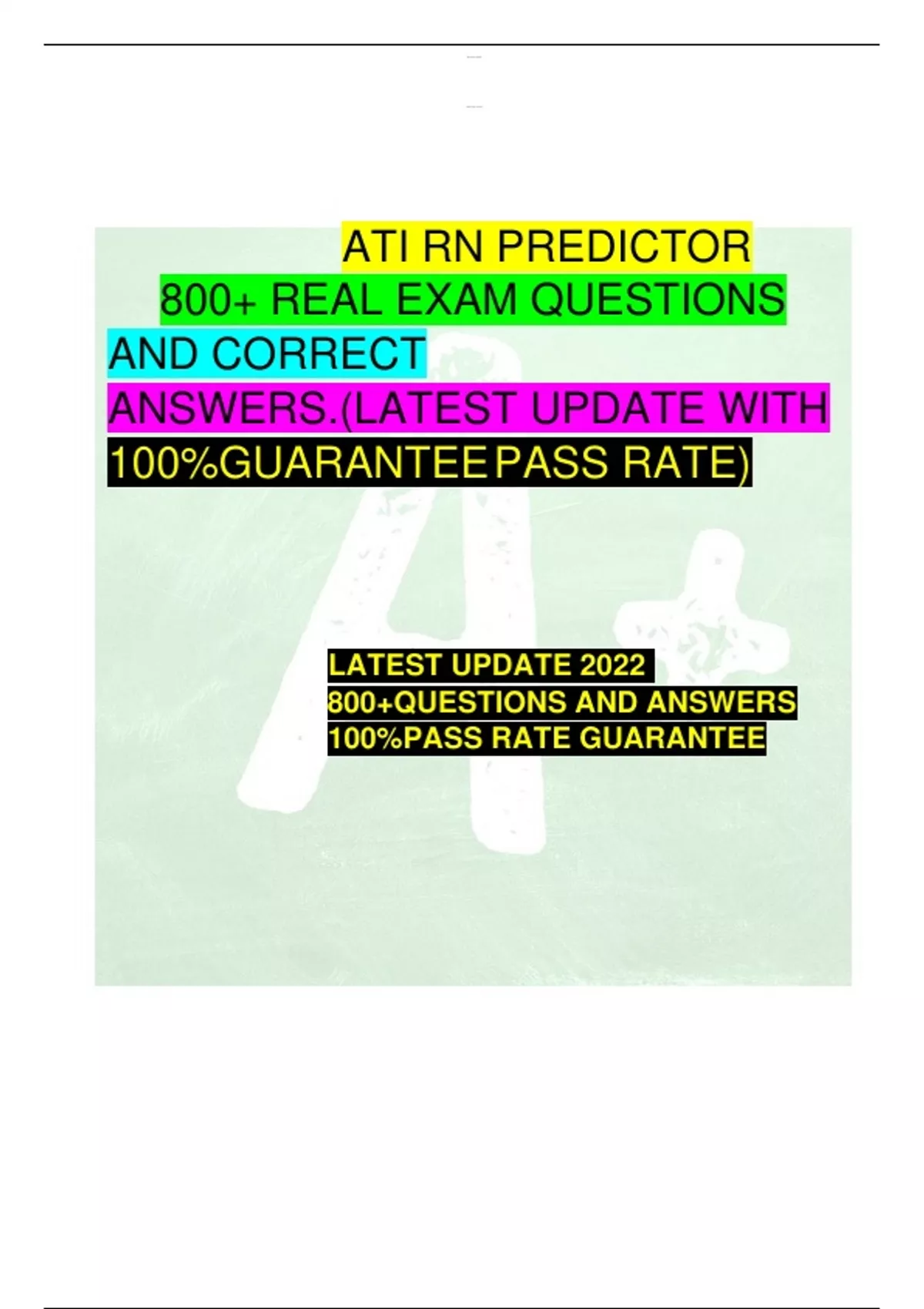 ATI RN PREDICTOR 800+ REAL EXAM QUESTIONS AND CORRECT ANSWERS.(LATEST UPDATE WITH 100%GUARANTEEPASS RATE) LATEST UPDATE 2022 800+QUESTIONS AND ANSWERS 100%PASS RATE GUARANTEE lOM oAR c P SD|
