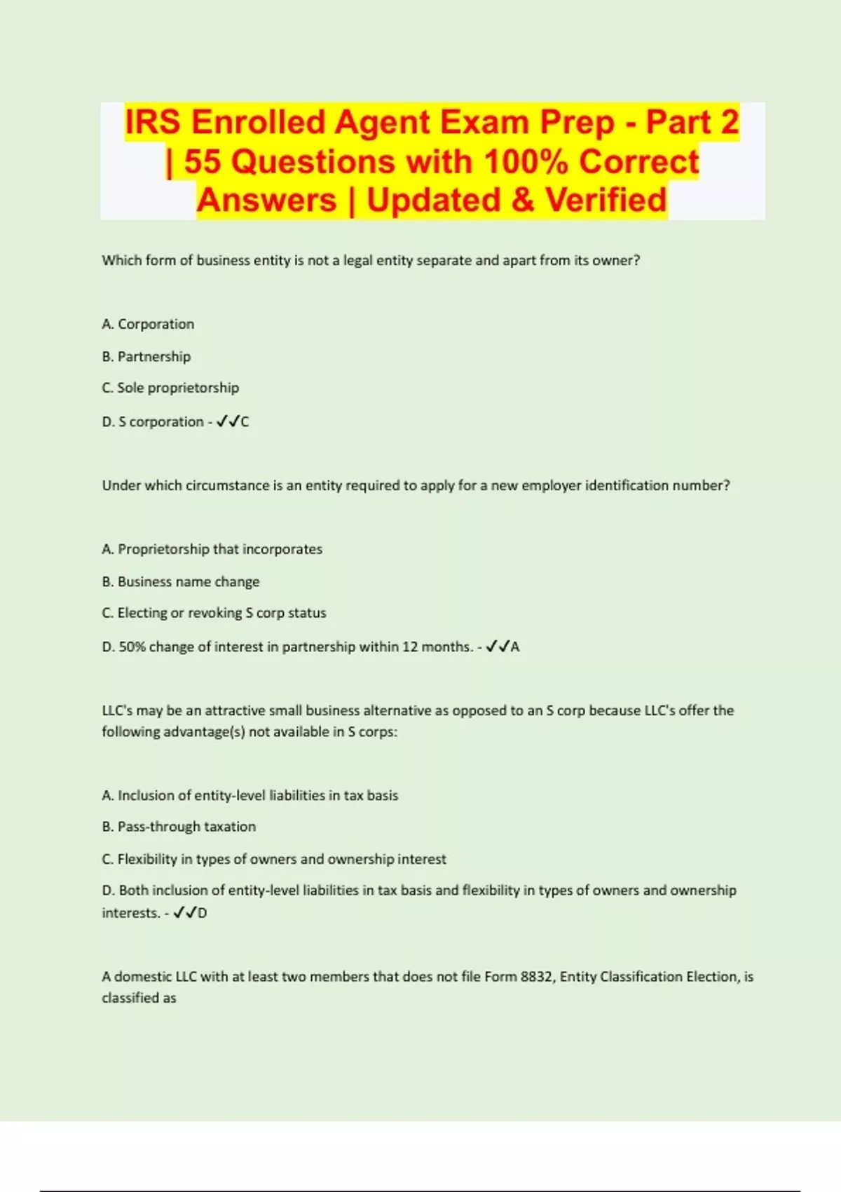 IRS Enrolled Agent Exam Prep - Part 2 | 55 Questions with 100% Correct Answers | Updated & Verified