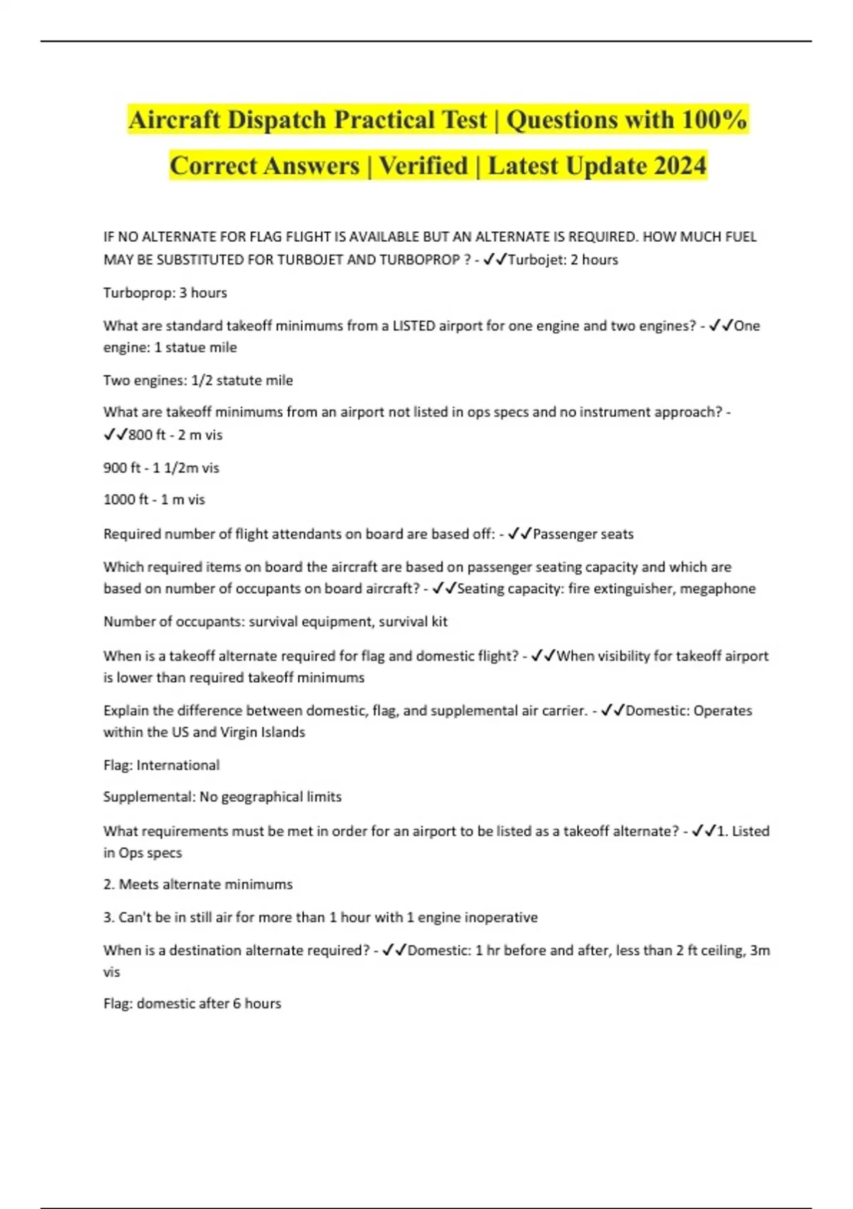 Aircraft Dispatch Practical Test | Questions with 100% Correct Answers | Verified | Latest Update 2024