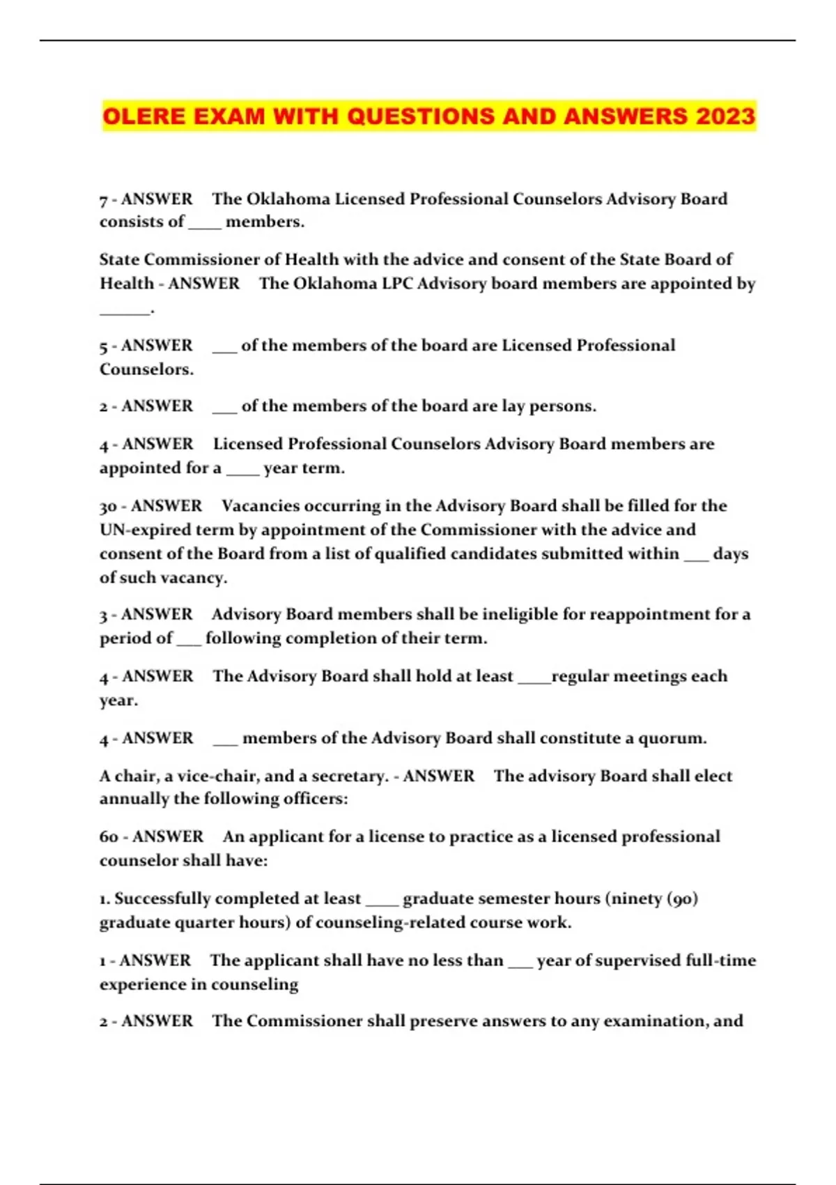 OLERE QUESTIONS AND ANSWERS OF 2023