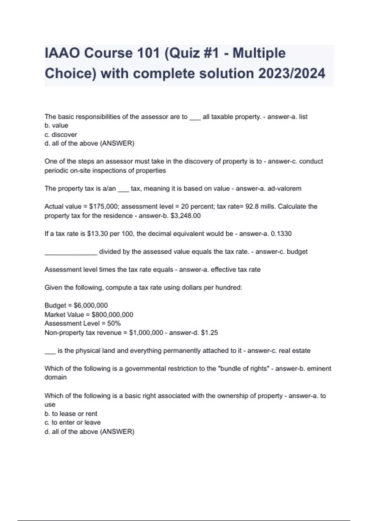 IAAO Course 101 (Quiz #1 - Multiple Choice) with complete solution 2023/2024