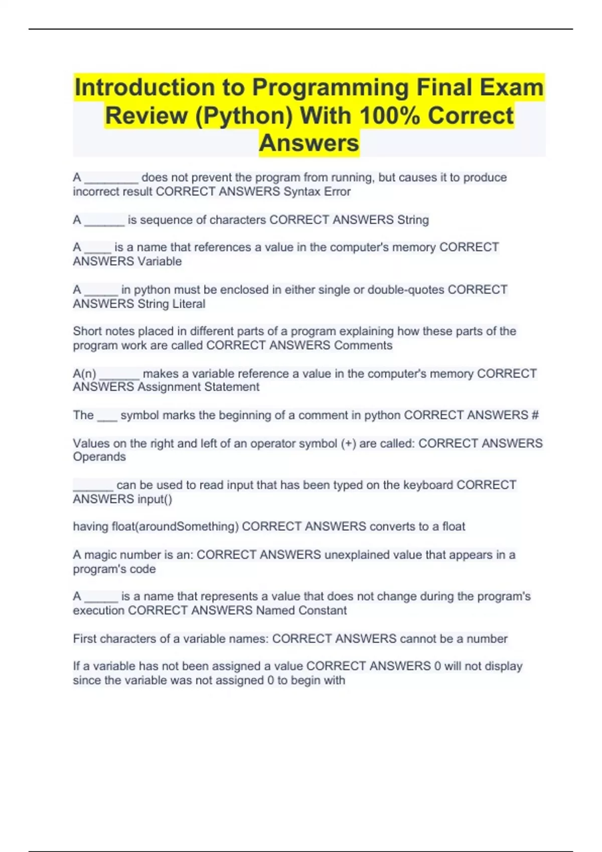 Introduction to Programming Final Exam Review (Python) With 100% Correct Answers