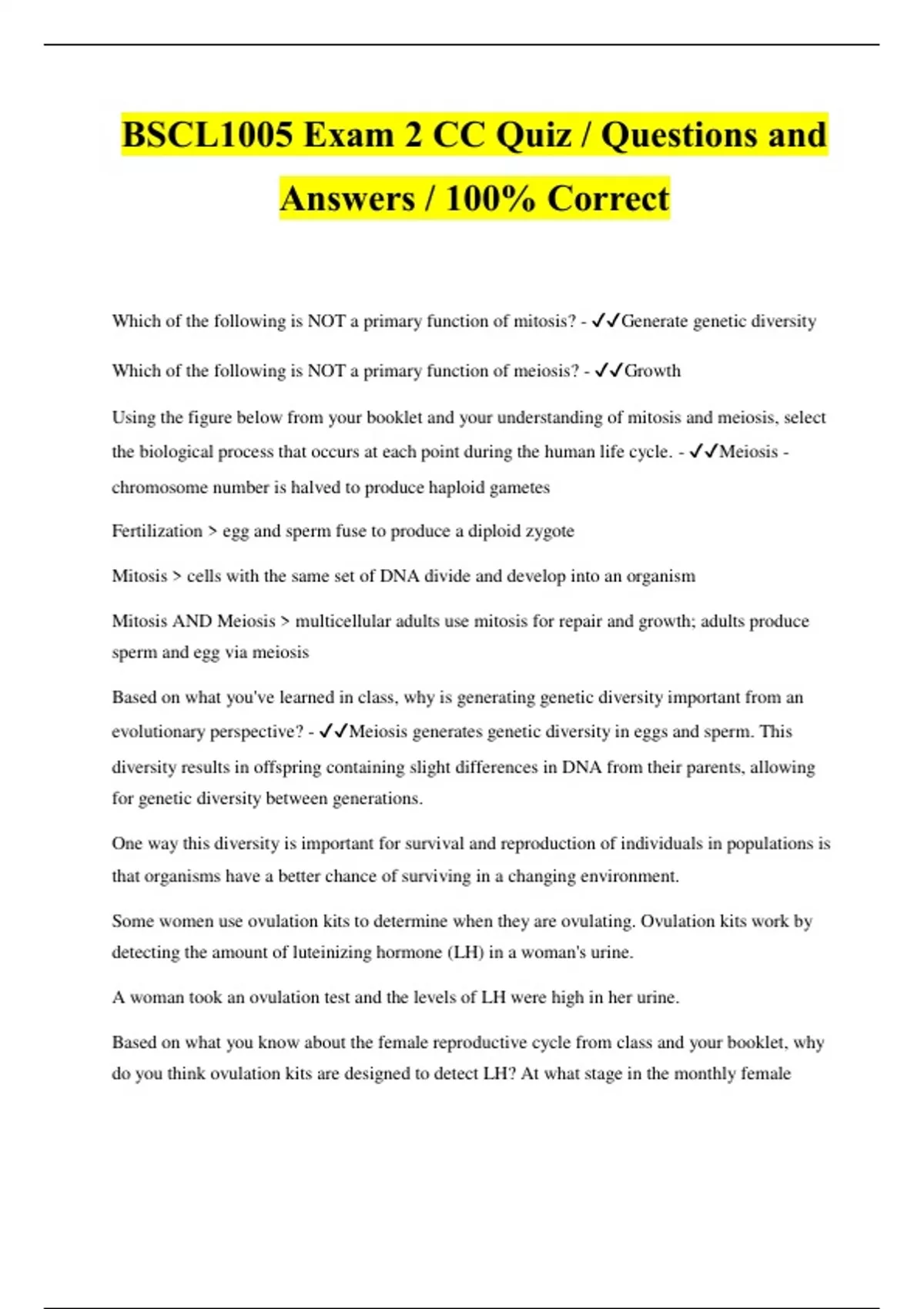 BSCL1005 Exam 2 CC Quiz / Questions and Answers / 100% Correct