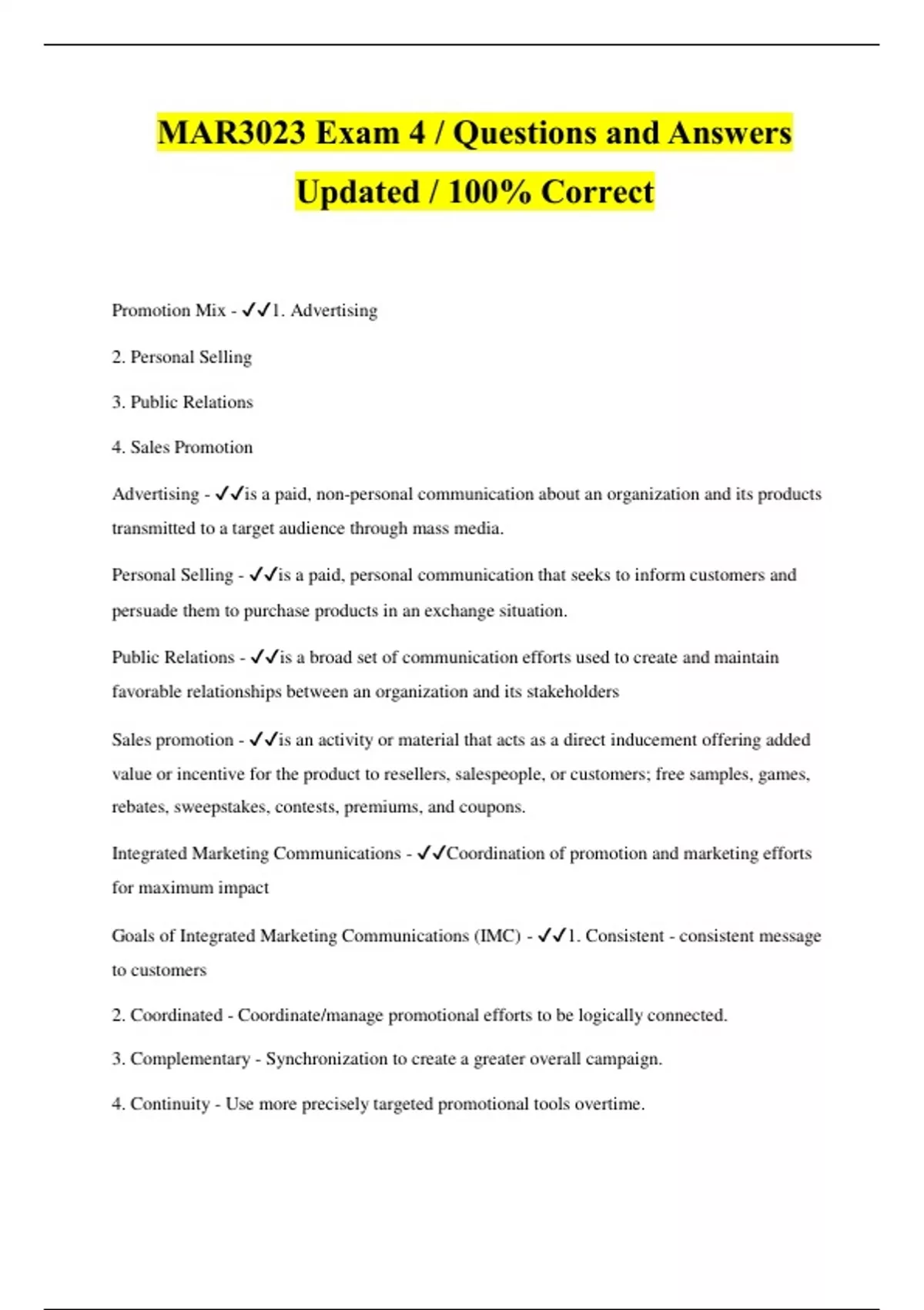 MAR3023 Exam 4 / Questions and Answers Updated / 100% Correct