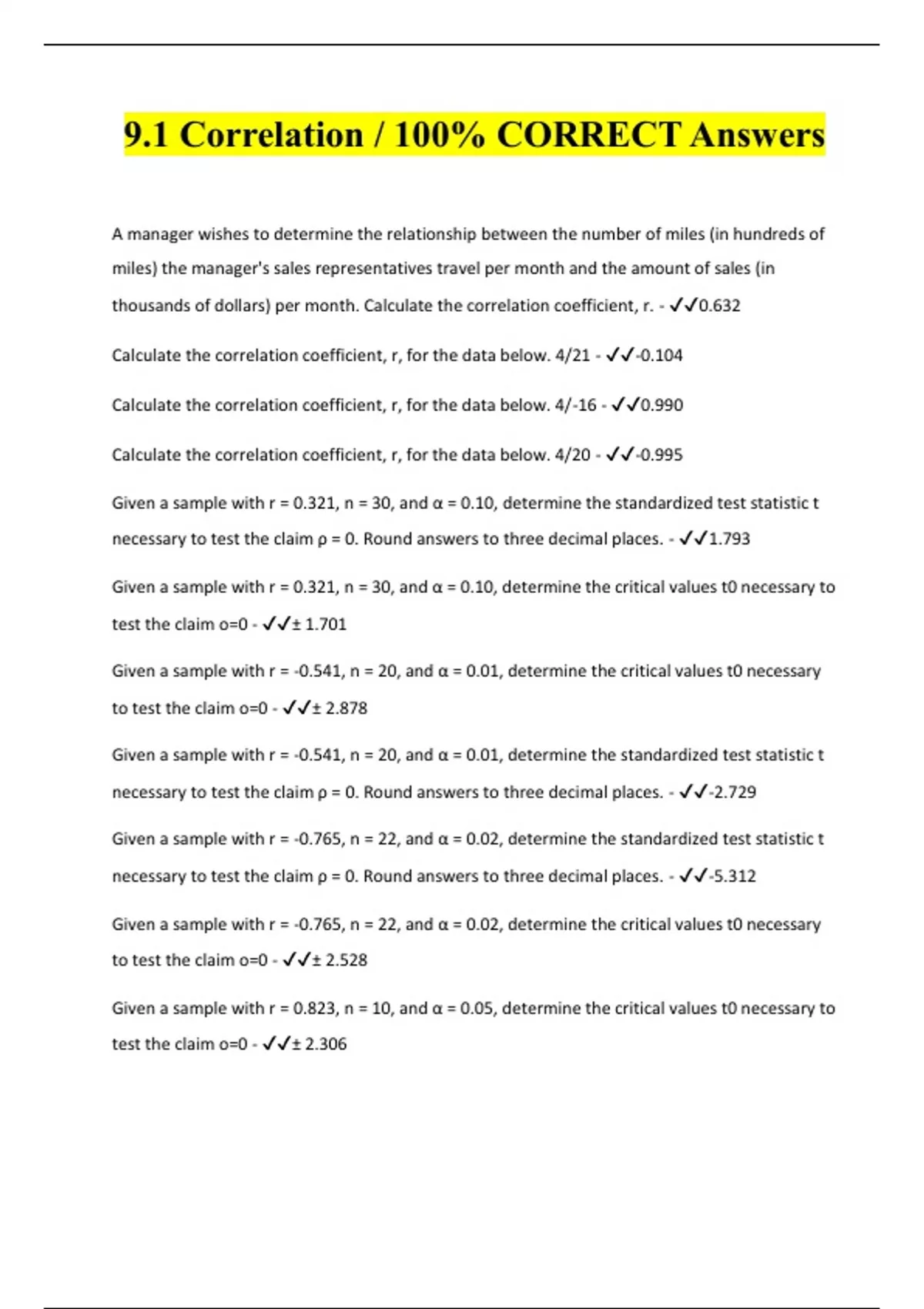 9.1 Correlation / 100% CORRECT Answers