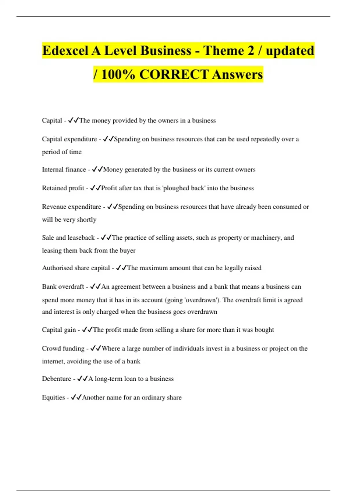 Edexcel A Level Business - Theme 2 / updated / 100% CORRECT Answers