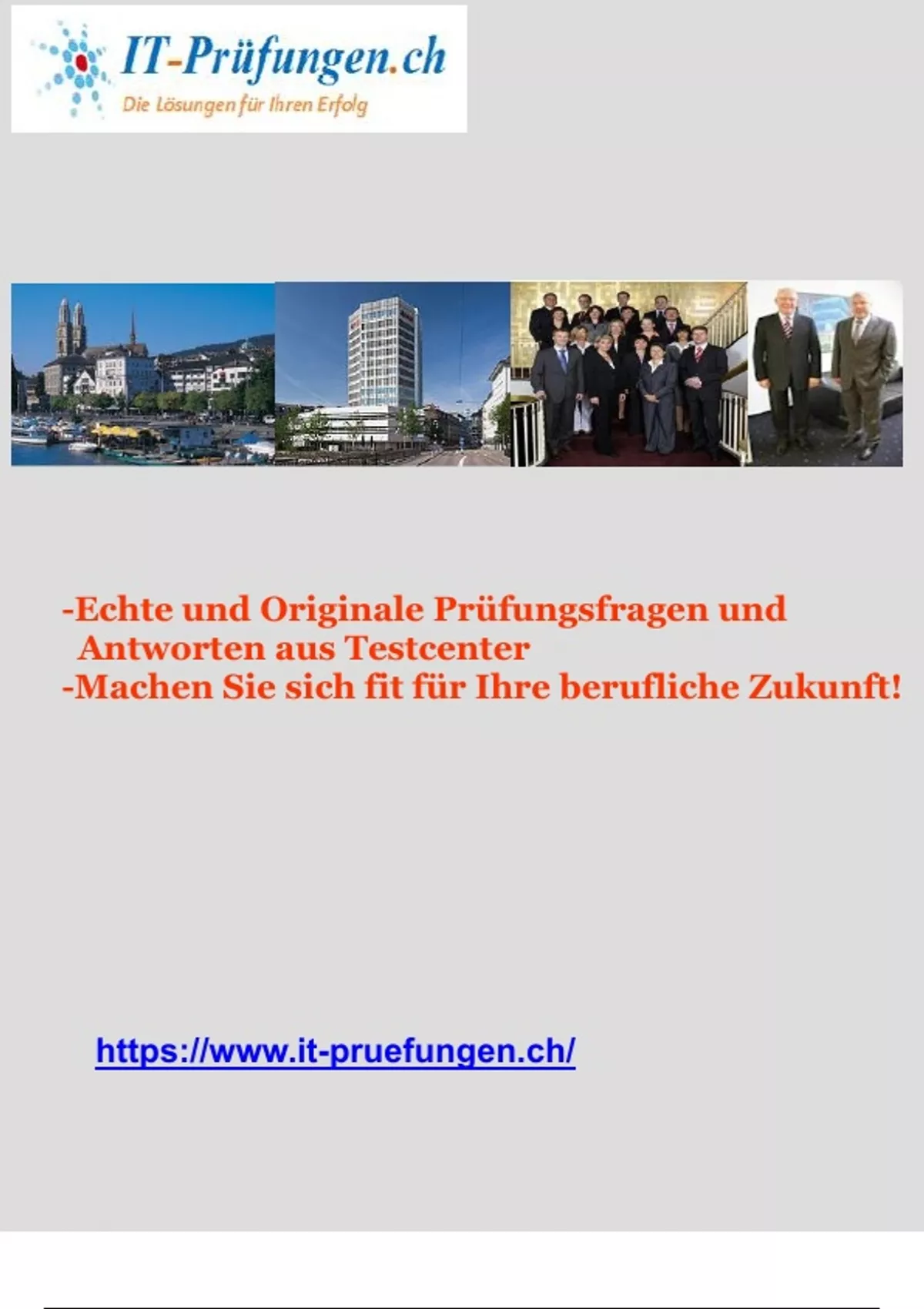 microsoft SC-900-deutsch originale Fragen, SC-900-deutsch IT-Prüfung von it-pruefungen .ch (deutsche Version ung englische Version) Microsoft Security, Compliance, and Identity Fundamentals Beim Online-Service von ,,it-pruefungen .ch" geht es um Forschungsmaterialien, die die SC-900-deutsch IT-Prüfung sowie Fragen und Antworten zur deutschen und englischen Version von Microsoft Security, Compliance, and Identity Fundamentals enthalten. Der Kundendienst bietet nicht nur die neuesten Fragen und Antworten sowie dynamische Informationen zur Microsoft SC-900-deutsch Zertifizierung, sondern aktualisiert auch kontinuierlich Prüfungsfragen, Antworten und Lernmaterialien. Microsoft Microsoft Certification SC-900-deutsch Prüfungsfragen und Prüfungsunterlagen Informationen zu dieser Prüfungsvorbereitung SC-900-deutsch Prüfungsnummer: SC-900-deutsch Prüfungsname: Microsoft Security, Compliance, and Identity Fundamentals (deutsche und englische Version) Anzahl: 204 Prüfungsfragen mit Lösungen Während die meisten Menschen denken würden, dass die Microsoft SC-900-deutsch Zertifizierungsprüfung schwer zu bestehen ist, ist es mit it-pruefungen .ch doch leichter, das Microsoft SC-900-deutsch Zertifikat zu erlangen. Die Trainingsinstrumente von it-pruefungen .ch sind sehr umfangreich. Sie enthalten sowohl Online-Service als auch Kundendienst. Die echten und originalen Prüfungsfragen und -antworten zu SC-900-deutsch Online-Schulung (deutsche und englische Version von Microsoft Security, Compliance, and Identity Fundamentals) bei wurden von unseren SC-900-deutsch-Experten in Zusammenarbeit mit den aktuellsten Informationen der Testzentren PROMETRIC oder VUE zusammengetragen und verfasst. Wenn Sie ,,it-pruefungen .ch" wählen, können Sie die Prüfung zu 100% bestehen. Nach den Veränderungen der Prüfungsthemen der Microsoft SC-900-deutsch Schulungsunterlagen aktualisieren wir auch ständig unsere Schulungsunterlagen und bieten neue Prüfungsinhalte an. ,,it-pruefungen .ch" bietet Ihnen rund um die Uhr kostenlosen Online-Service. Falls Sie bei der Microsoft SC-900-deutsch Simulationsprüfung (deutsche und englische Version von Microsoft Security, Compliance, and Identity Fundamentals) durchfallen, erstatten wir Ihnen die gesamte Summe zurück.