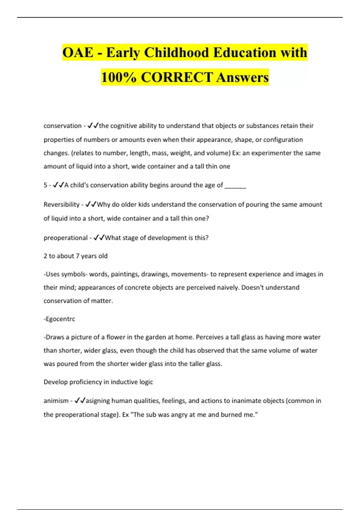 OAE - Early Childhood Education with 100% CORRECT Answers
