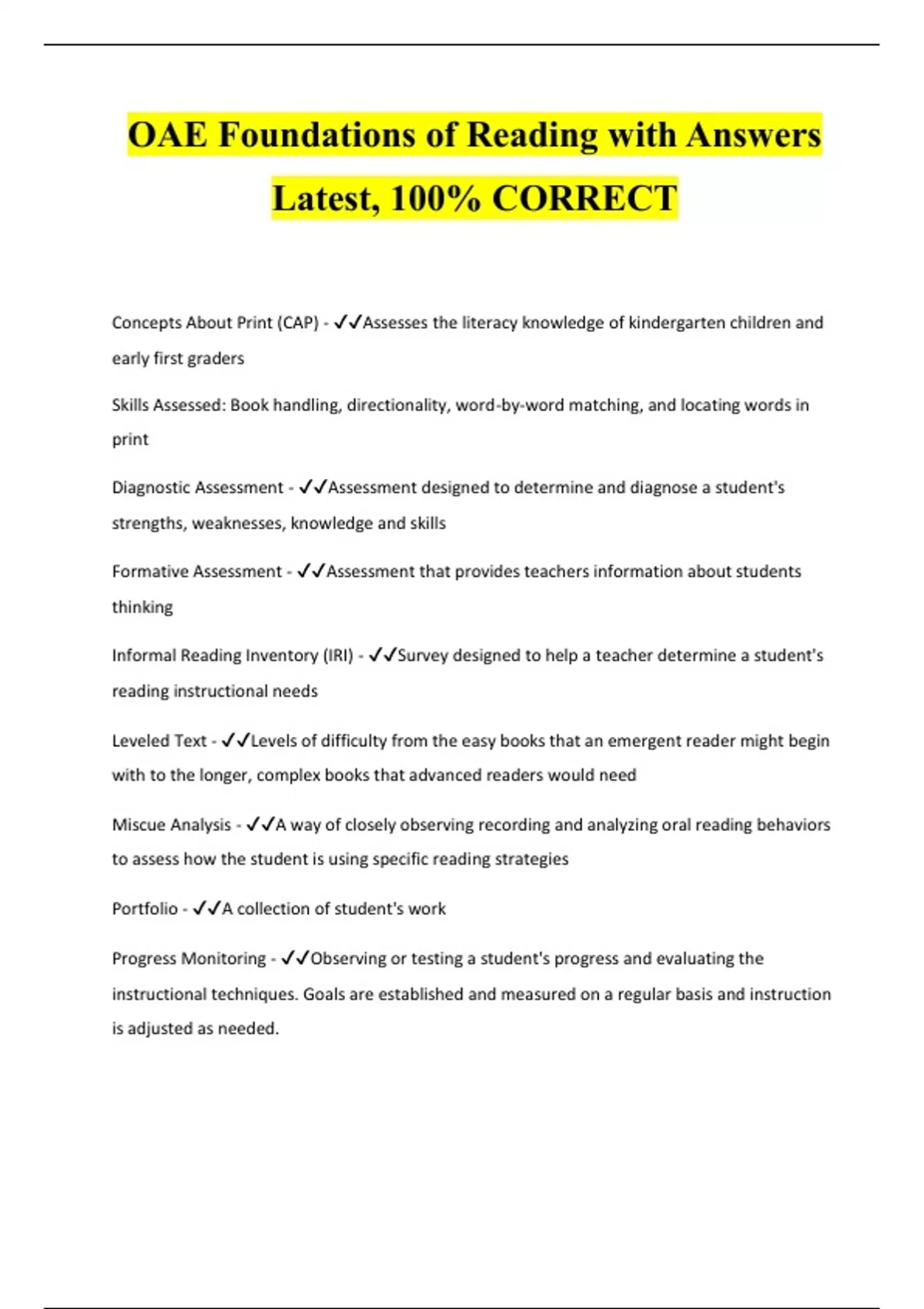OAE Foundations of Reading with Answers Latest, 100% CORRECT