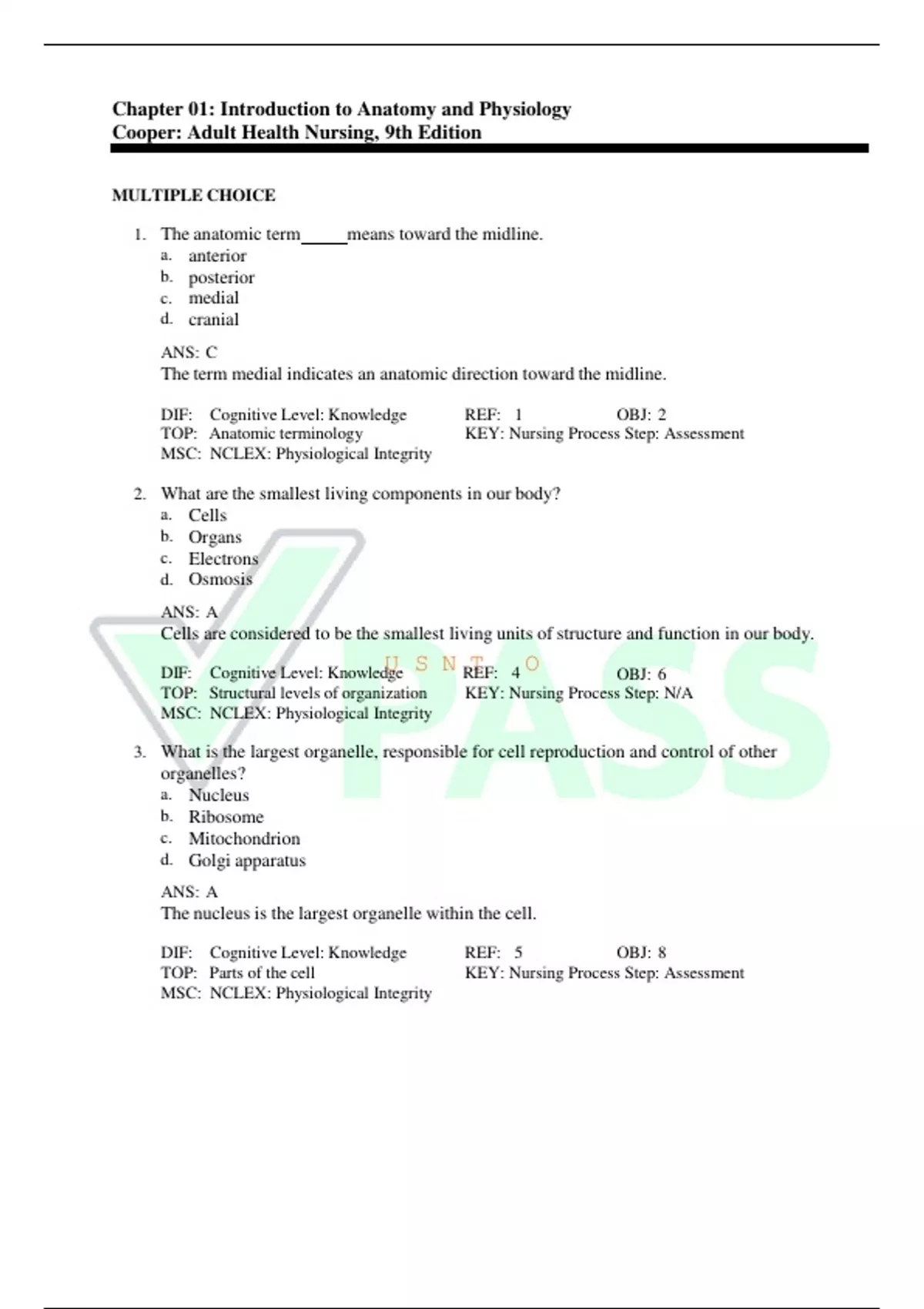 TOP: Parts of the cell KEY: Nursing Process Step: Assessment