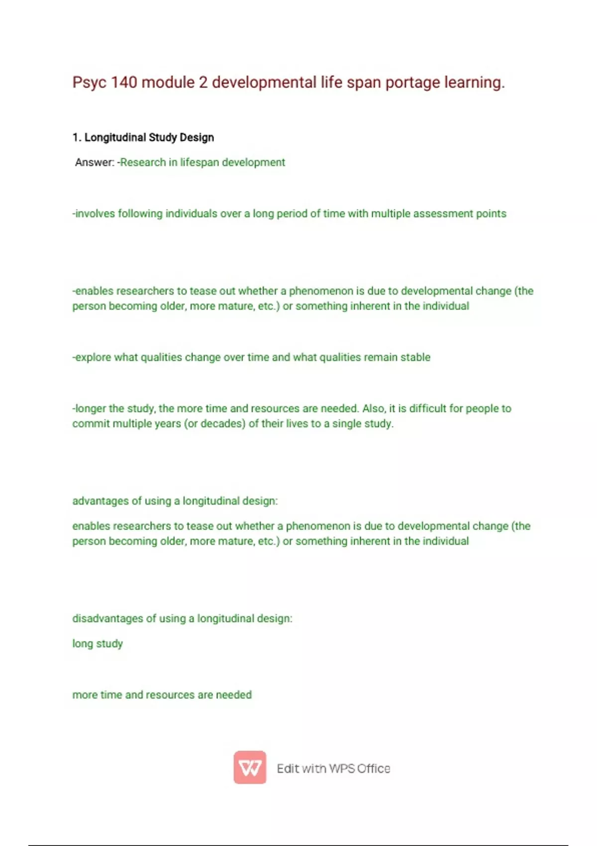 Test bank Psy 140 life span portage learning full course all modules with questions and answers