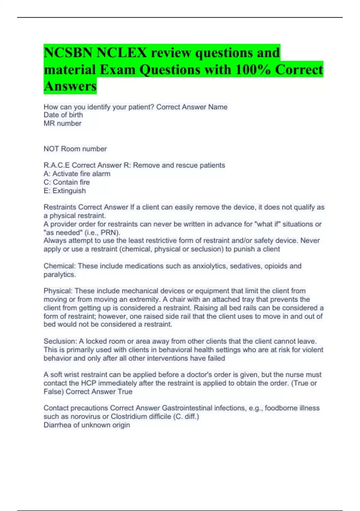 NCSBN NCLEX review questions and material Exam Questions with 100% Correct Answers