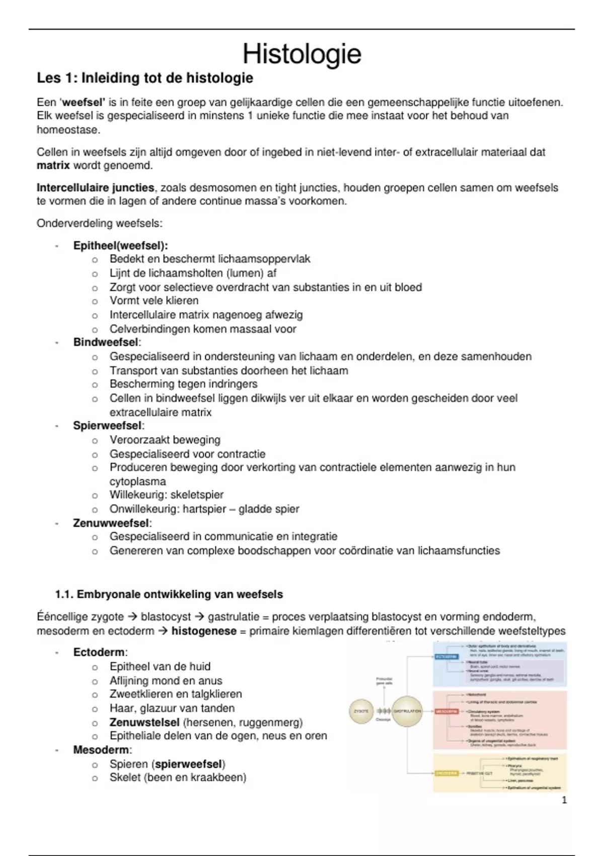 Samenvatting van alle theorie uit de cursus histologie van Prof. dr. Jean-Pierre Timmermans en dr. Inge Brouns. Ook afbeeldingen zijn bijgevoegd om de leerstof te verduidelijken.