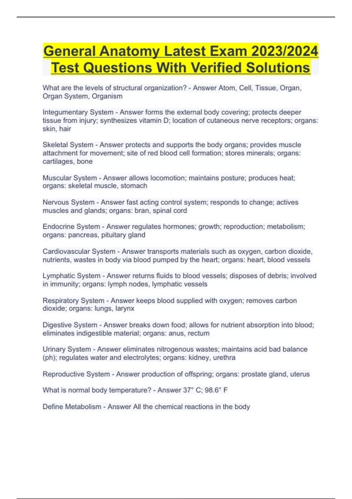 What are the levels of structural organization? - Answer Atom, Cell, Tissue, Organ, Organ System, Organism