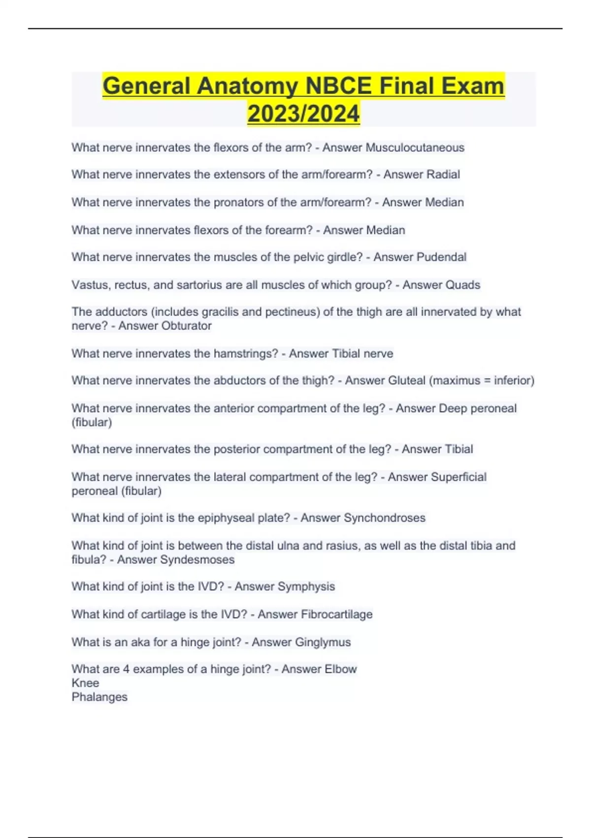 BUNDLE OF NBCE GENERAL ANATOMY EXAMS 2024