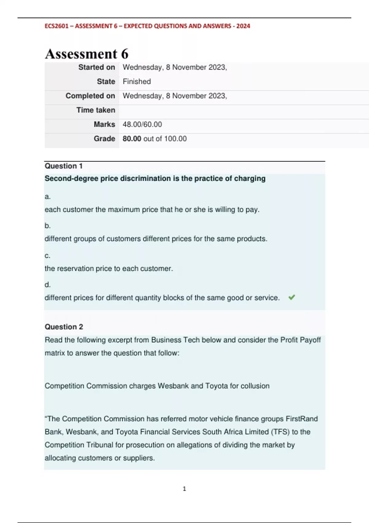 ECS2601 - ASSESSMENT 6 - EXPECTED QUESTIONS AND ANSWERS - 2024