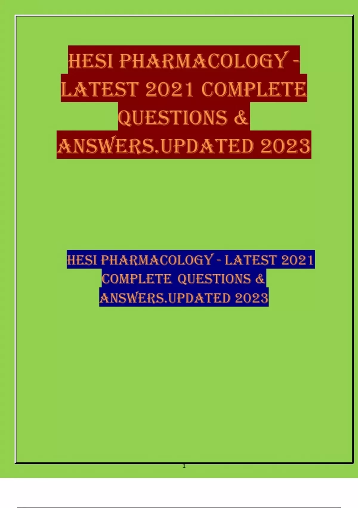 HESI PHARMACOLOGY - LATEST 2021 COMPLETE QUESTIONS &