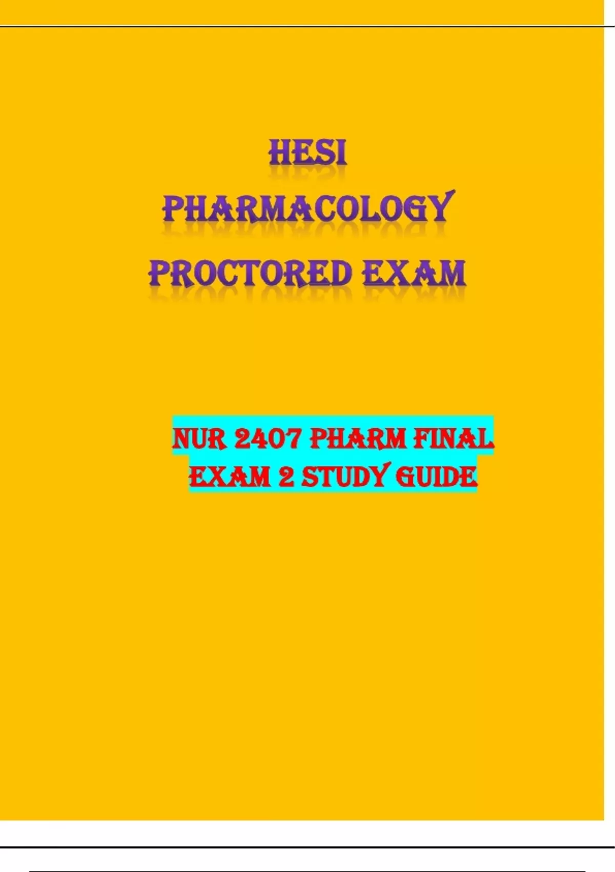 HESI PHARMACOLOGY PROCTORED NUR 2407 PHARM FINAL EXAM 2