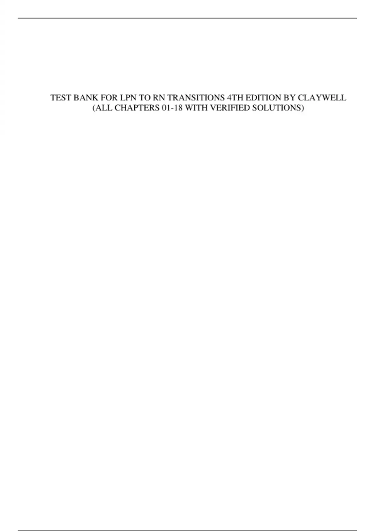 TEST BANK FOR LPN TO RN TRANSITIONS 4TH EDITION BY CLAYWELL (ALL CHAPTERS 01-18) LATEST UPDATE 2023/2024