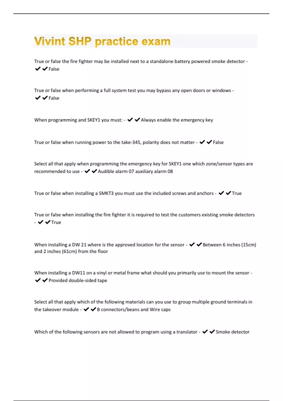 Vivint SHP practice exam Questions And Answers Already Passed!!