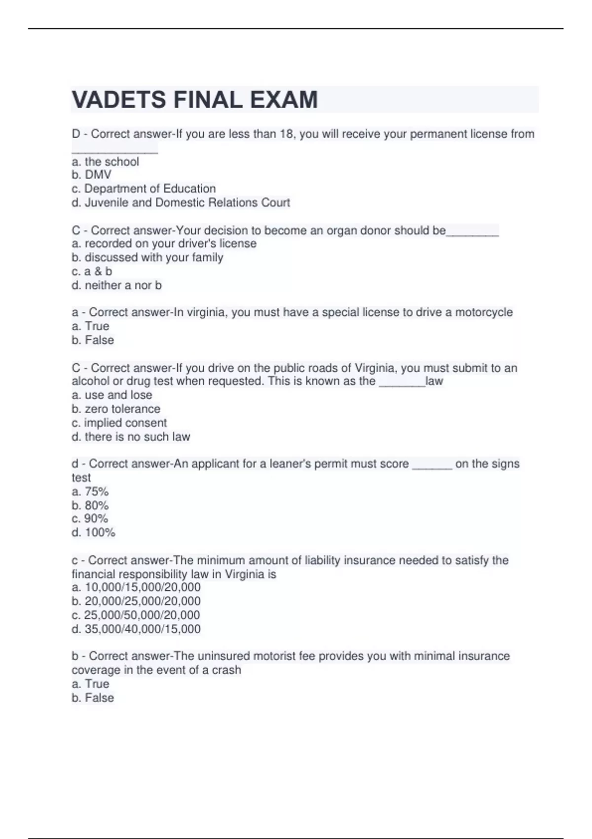 2023 VADETS exam Brand New Questions and answers graded A+