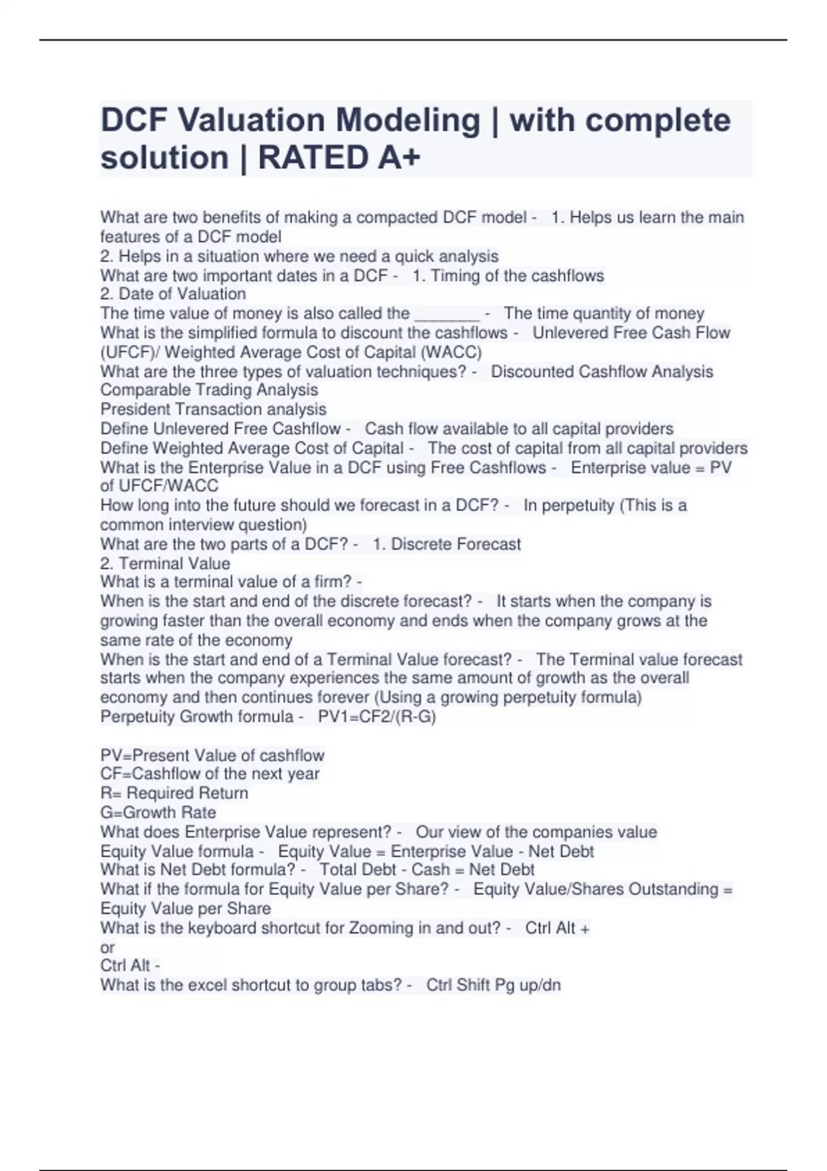 DCF Valuation Modeling | with complete solution | RATED A+