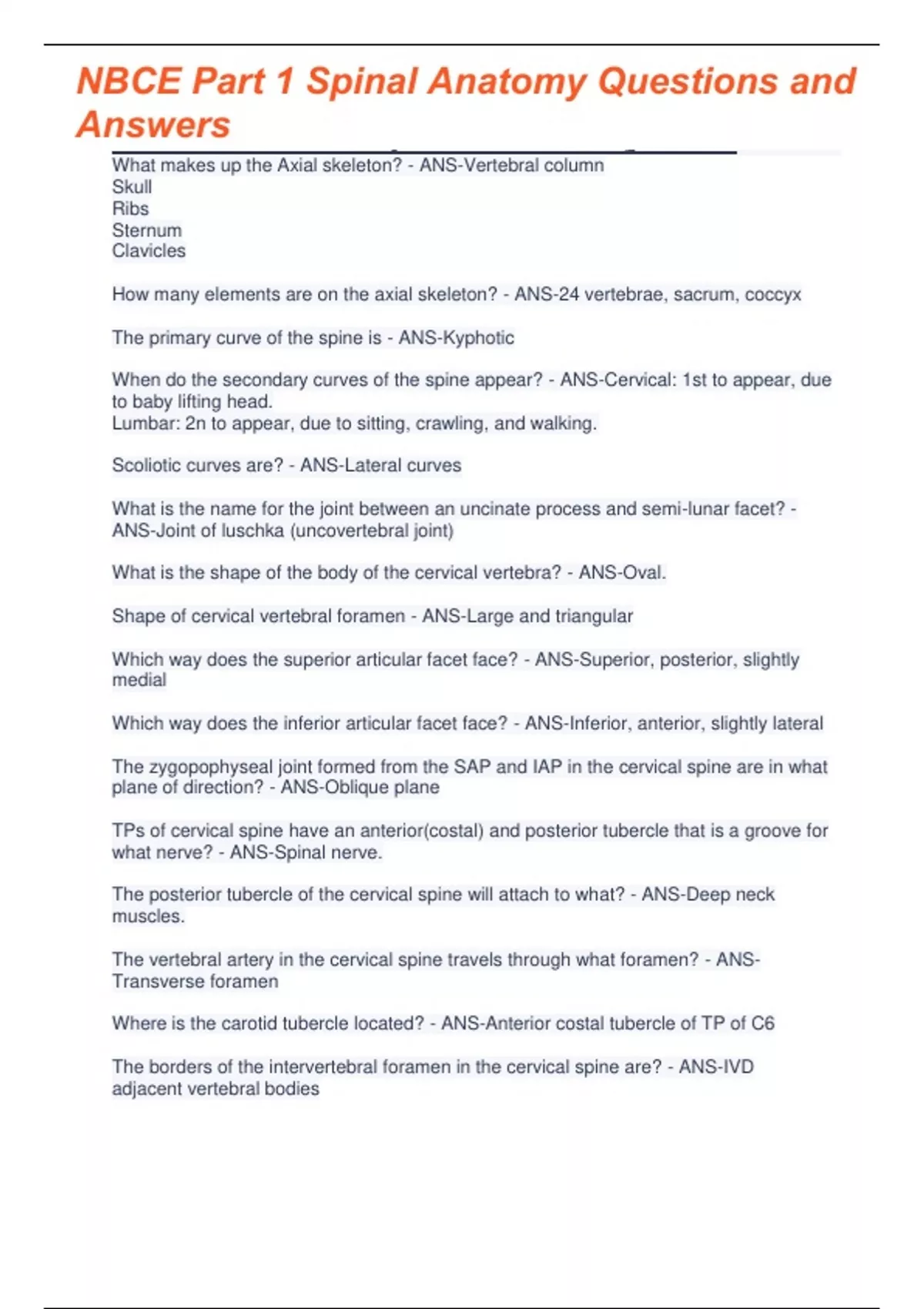 NBCE Part 1 - Spinal Anatomy Exam Questions and Answers