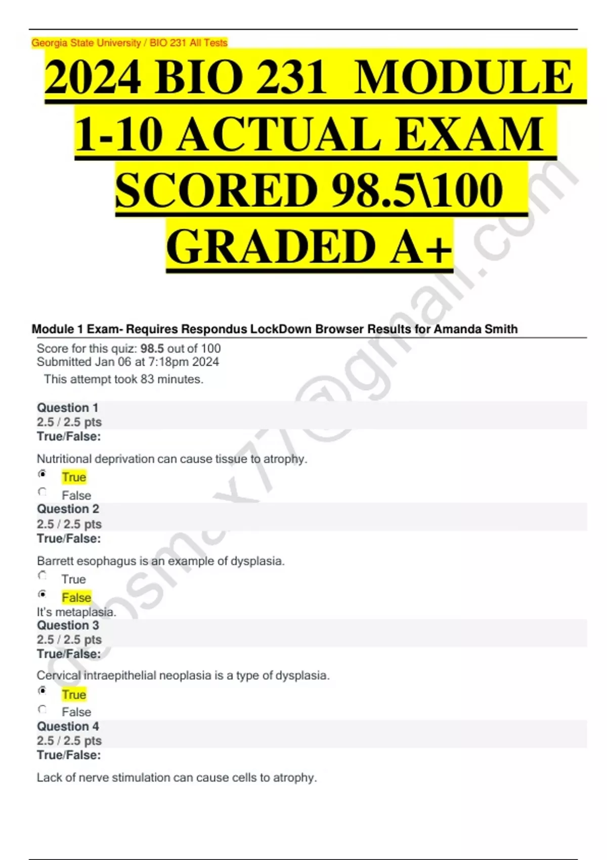 2024 BIO 231 MODULE 1-10 ACTUAL EXAM SCORED 98.5100 GRADED A+