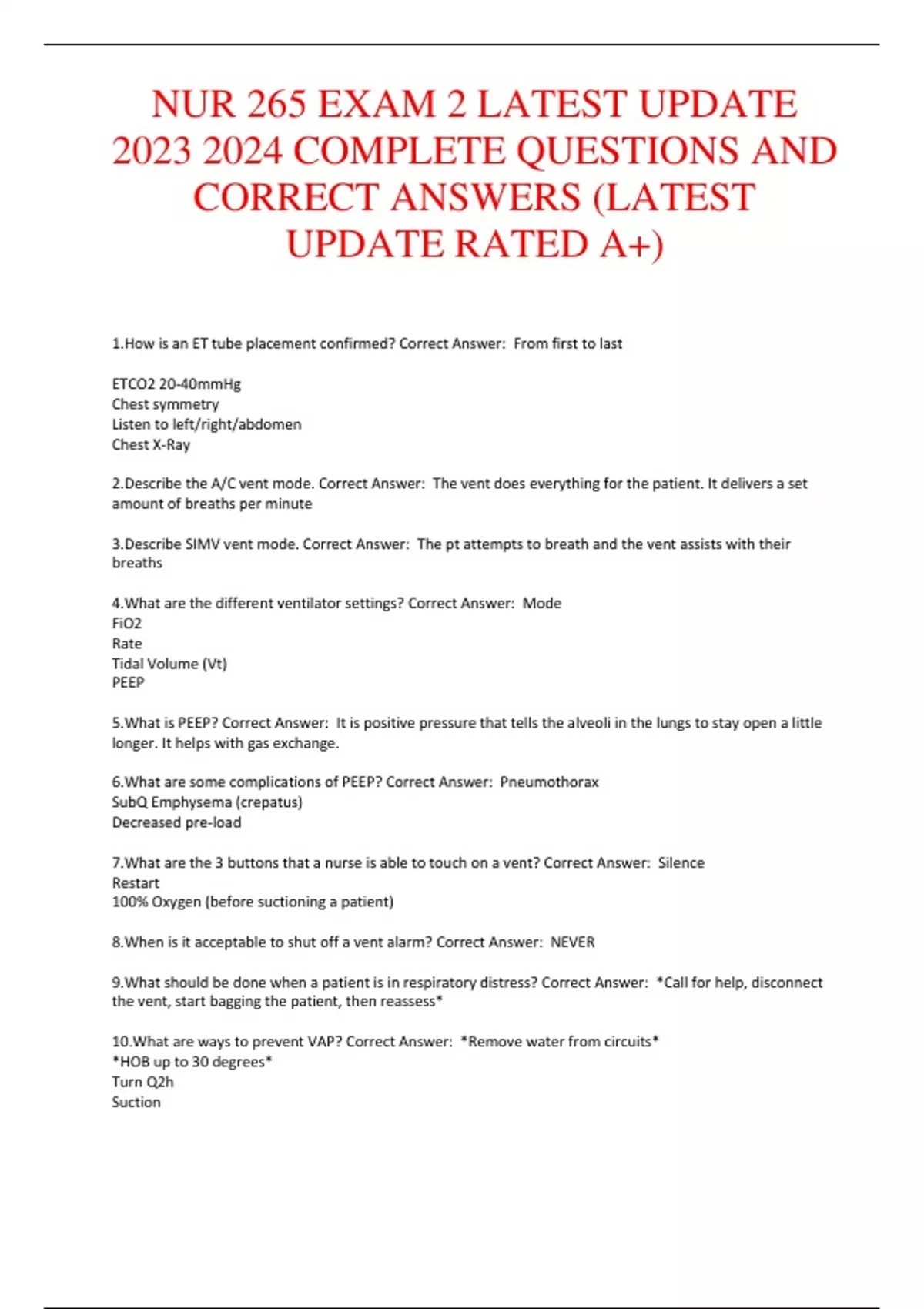 NUR 265 EXAM 2 LATEST UPDATE COMPLETE QUESTIONS AND CORRECT ANSWERS (LATEST UPDATE RATED A+) NUR 265 EXAM 2 LATEST UPDATE COMPLETE QUESTIONS AND CORRECT ANSWERS (LATEST UPDATE RATED A+) NUR 265 EXAM 2 LATEST UPDATE COMPLETE QUESTIONS AND CORRECT ANSWERS (LATEST UPDATE RATED A+)