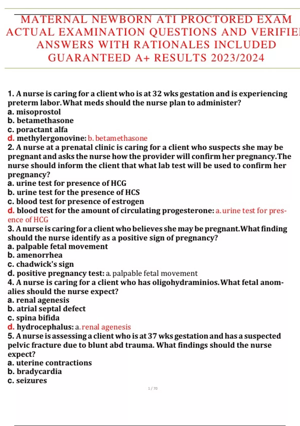 MATERNAL NEWBORN ATI PROCTORED EXAM ACTUAL EXAMINATION QUESTIONS AND VERIFIED ANSWERS WITH RATIONALES INCLUDED GUARANTEED A+ RESULTS 2023/2024 MATERNAL NEWBORN ATI PROCTORED EXAM ACTUAL EXAMINATION QUESTIONS AND VERIFIED ANSWERS WITH RATIONALES INCLUDED GUARANTEED A+ RESULTS 2023/2024 MATERNAL NEWBORN ATI PROCTORED EXAM ACTUAL EXAMINATION QUESTIONS AND VERIFIED ANSWERS WITH RATIONALES INCLUDED GUARANTEED A+ RESULTS 2023/2024 MATERNAL NEWBORN ATI PROCTORED EXAM ACTUAL EXAMINATION QUESTIONS AND VERIFIED ANSWERS WITH RATIONALES INCLUDED GUARANTEED A+ RESULTS 2023/2024