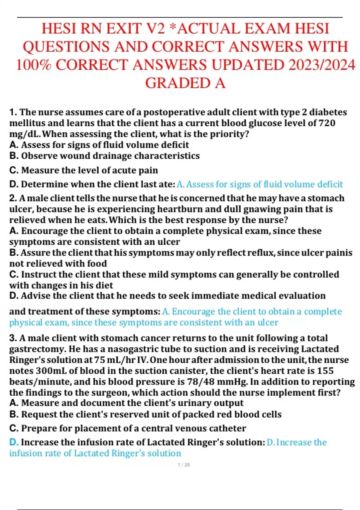 HESI RN EXIT V2 *ACTUAL EXAM HESI QUESTIONS AND CORRECT ANSWERS WITH 100% CORRECT ANSWERS UPDATED 2023/2024 GRADED A HESI RN EXIT V2 *ACTUAL EXAM HESI QUESTIONS AND CORRECT ANSWERS WITH 100% CORRECT ANSWERS UPDATED 2023/2024 GRADED A HESI RN EXIT V2 *ACTUAL EXAM HESI QUESTIONS AND CORRECT ANSWERS WITH 100% CORRECT ANSWERS UPDATED 2023/2024 GRADED A HESI RN EXIT V2 *ACTUAL EXAM HESI QUESTIONS AND CORRECT ANSWERS WITH 100% CORRECT ANSWERS UPDATED 2023/2024 GRADED A