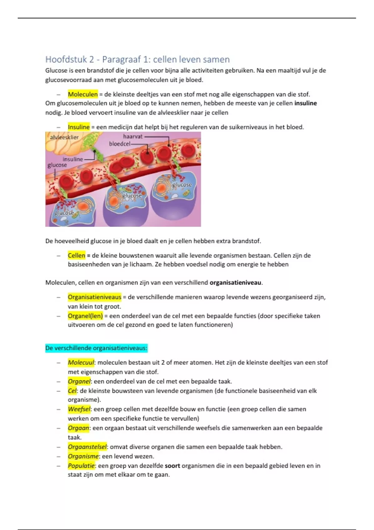 Deze samenvatting gaat over Biologie hoofdstuk 2 cel en leven. In deze samenvatting staan duidelijke aantekeningen en belangrijke begrippen die zeker nodig zijn voordat je de toetsweek in gaat! Ik haal gemiddeld een 7,5 /8 met mijn samenvattingen door bijvoorbeeld de belangrijkste hoofdvragen te markeren (zoals weergeven in het docu.). Ook staan in deze samenvatting: aantekeningen die tijdens de les zijn genomen, belangrijke begrippen die je zeker nodig hebt tijdens het leren & het beantwoorden van leerdoelen/ hoofdvragen. Ik ben er zeker van overtuigd dat je een hoog cijfer gaat halen met behulp van mijn samenvatting(en). Ik wens jullie veeeeel succes met leren!! Doe je best :)