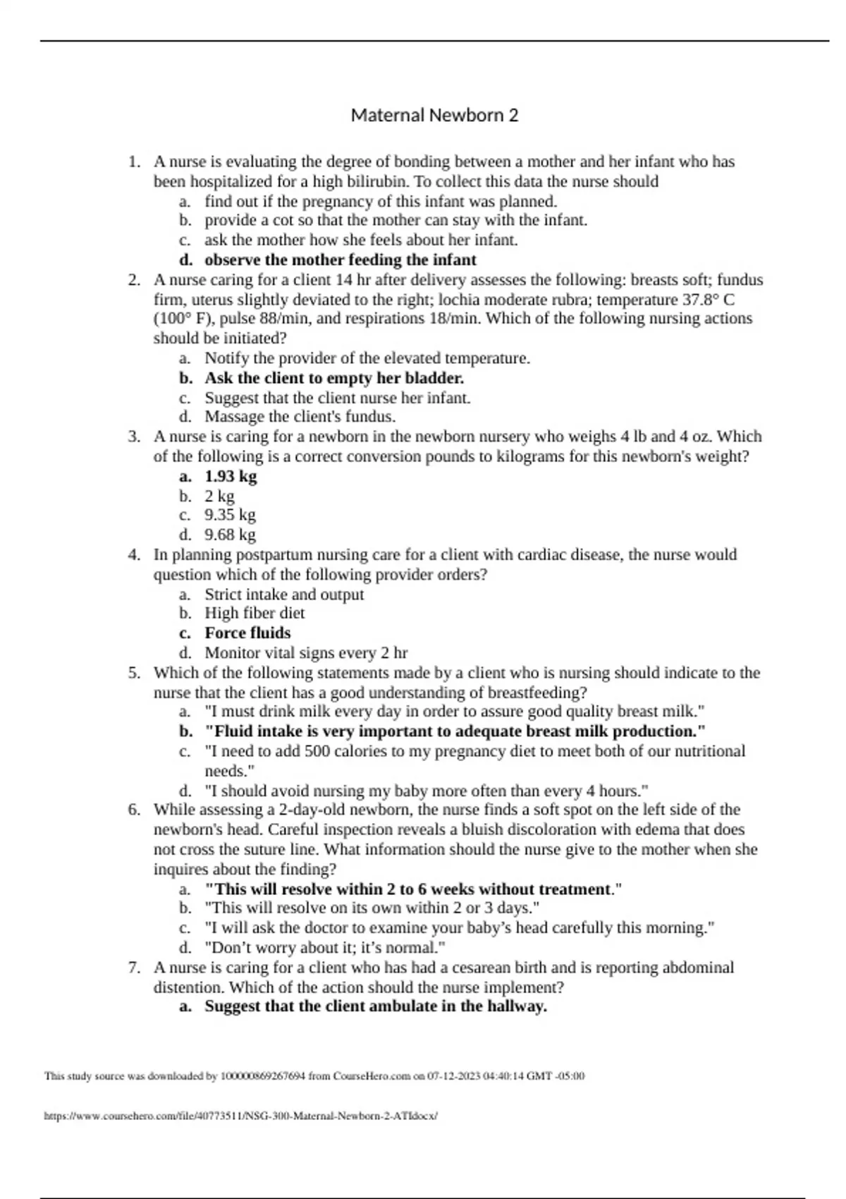 NSG 300 Maternal Newborn 2 ATI. NSG 300 Maternal Newborn 2 ATI. NSG 300 Maternal Newborn 2 ATI.